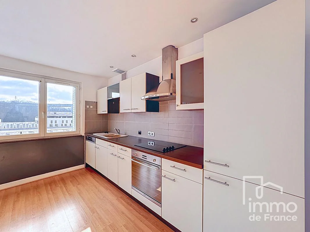 Appartement d'une superficie de 80 m², situé en hypercentre. Il se compose d'une cuisine ouverte sur un salon séjour exposé plein Sud, offrant une excellente luminosité et donnant accès à un balcon.