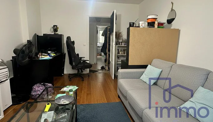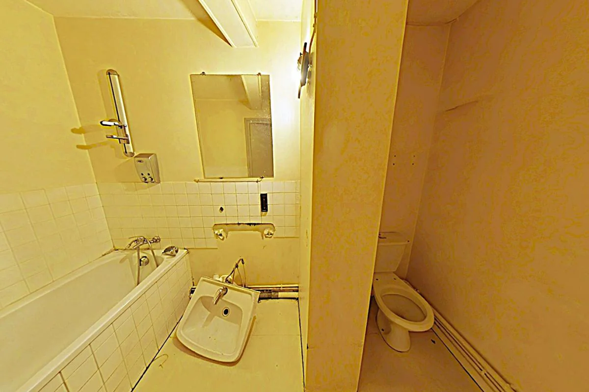 Deuxième étage sans ascenseur, on entre sur une grande pièce à vivre, une chambre (non fermée) sur l'arrière, espace cuisine ouverte, salle de bains avec toilettes.