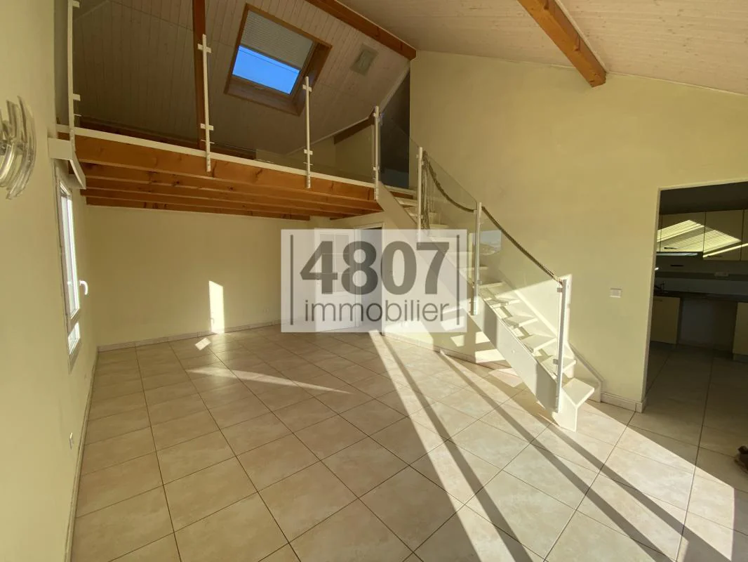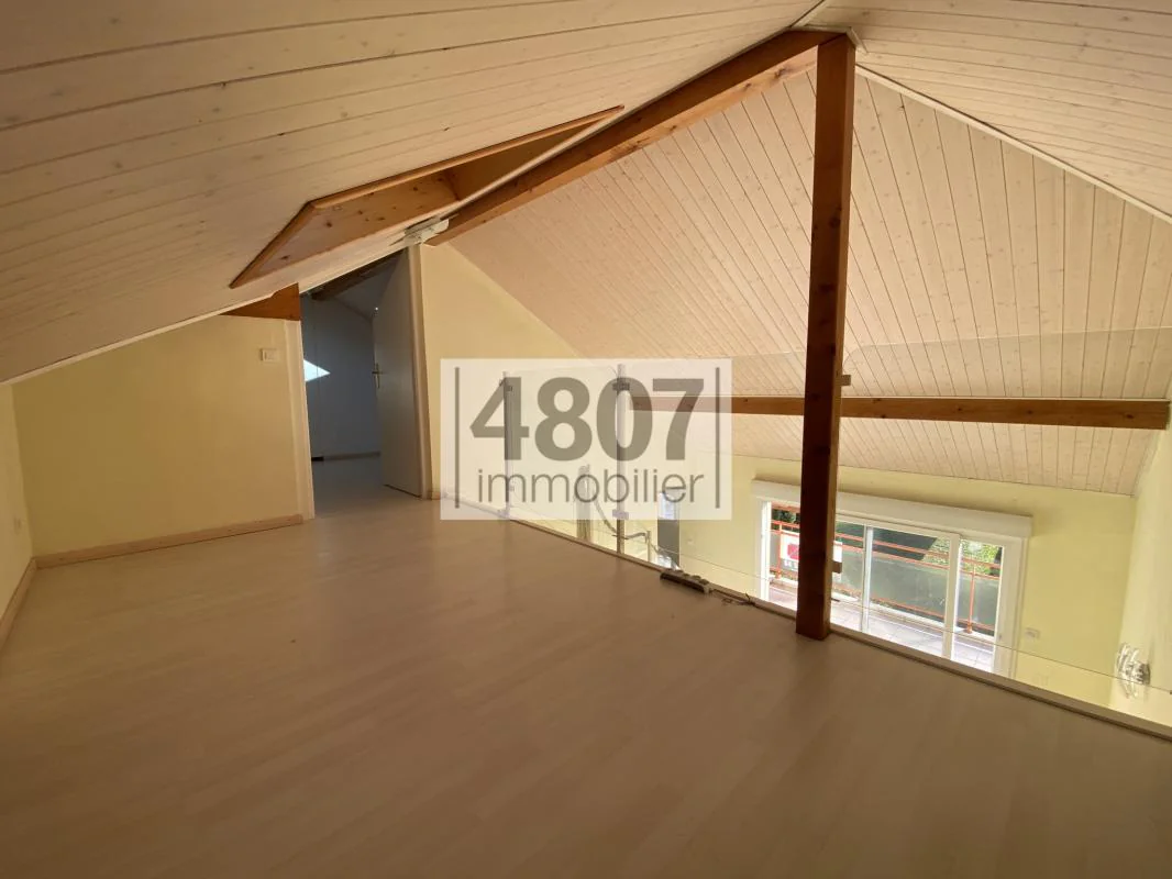 4807 vous propose en EXCLUSIVITE , un appartement de type T4 situé au 2è et dernier étage d'une copropriété bien entretenue, à proximité immédiate du centre-ville de Reignier, offre un cadre de vie agréable et lumineux. Dès l'entrée, équipée d'un placard de rangement, vous accédez à l'espace de vie composé d'une belle pièce principale exposée plein sud, avec une cuisine semi-ouverte et semi-équipée. Cet espace convivial s'ouvre directement sur une terrasse, idéale pour profiter des beaux jours. Le salon dispose également d'une mezzanine ouverte, menant à une petite chambre aménagée dans les combles, apportant charme et fonctionnalité à l'ensemble. Cet appartement dispose également d'une salle de bain et de deux chambres (dont une avec douche privative). Une cave et une place de parking exterieur complètent ce bien. Possibilité d'un garage en sus.