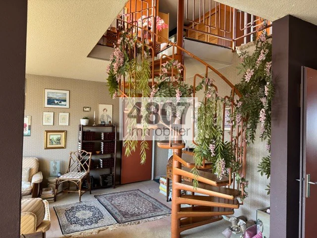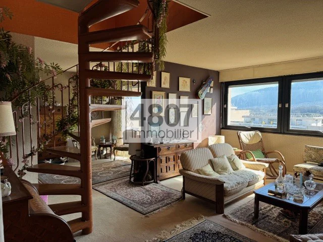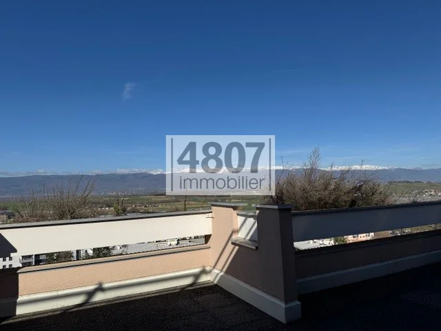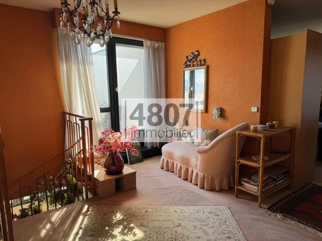 Situé au dernier étage d'un immeuble, ce superbe duplex offre des volumes généreux et une distribution idéale et confortable avec une terrasse panoramique de 113 m2. Il se compose d'un espace cuisine, d'un coin salon de 32 m2, ainsi que d'un espace nuit comprenant 5 chambres, répondant parfaitement aux besoins d'une grande famille. Le bien dispose de deux salles de bains, particulièrement pratiques. La surface habitable s'élève à environ 157m2, offrant des espaces lumineux et bien agencés. L'appartement bénéficie également cave, ainsi que de deux garages. Ce bien rare combine espace, confort et fonctionnalité. 04 50 49 48 07