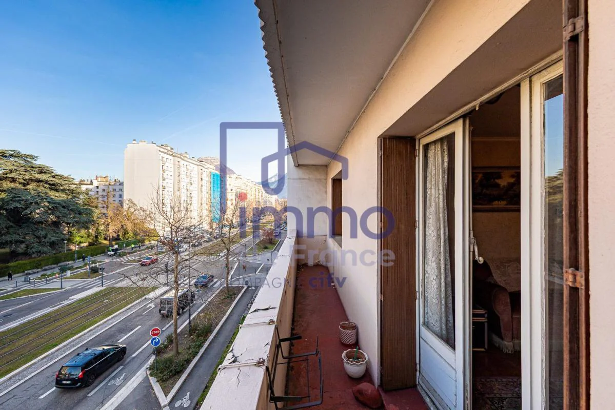 Spacieux T3 de 75m² au troisième étage avec ascenseur d'une copropriété sécurisée et fermée. Le logement, entièrement à rénover, est composé ; d'un séjour avec grand balcon de 7m² offrant une vue sur le Vercors, une cuisine avec loggia, deux chambres, une salle de bains et un WC.