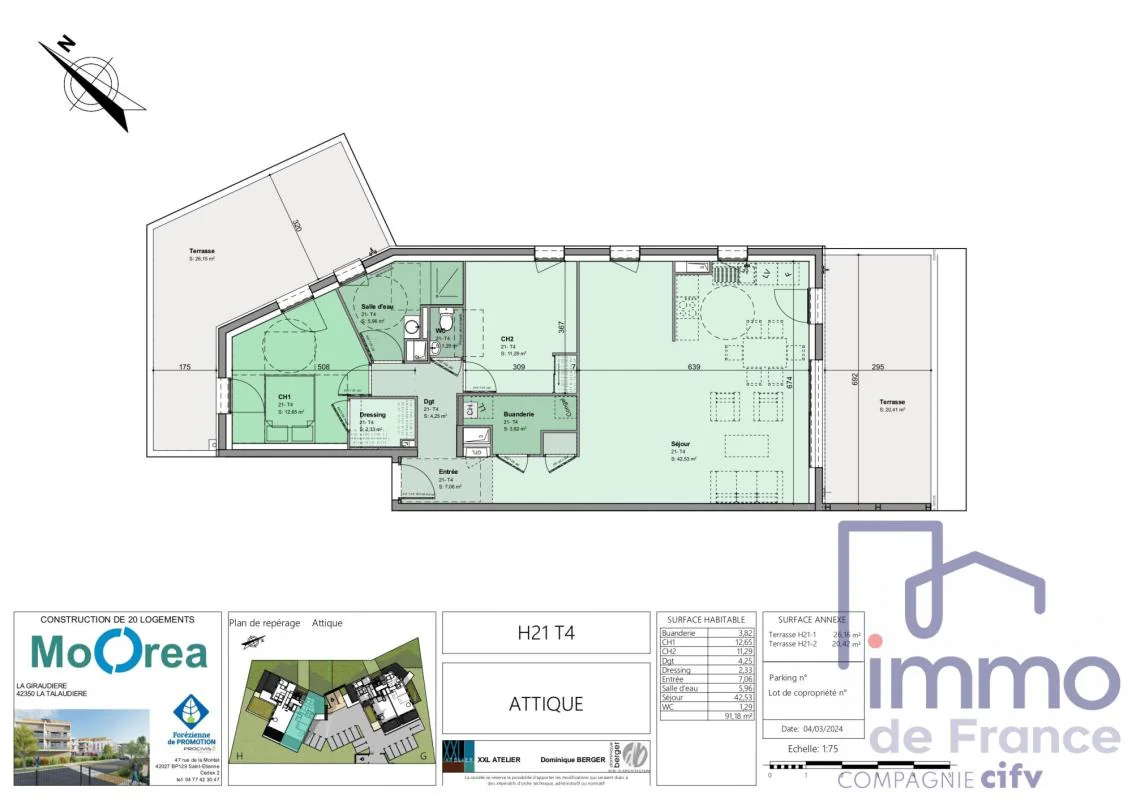 La Talaudière proche centre ville , situé un quartier calme et verdoyant proche de toutes les commodités, dans une petite résidence sécurisée neuve de standing, Le Moorea, aux dernières normes et bénéficiant des garanties du neuf , conforme aux normes PMR;