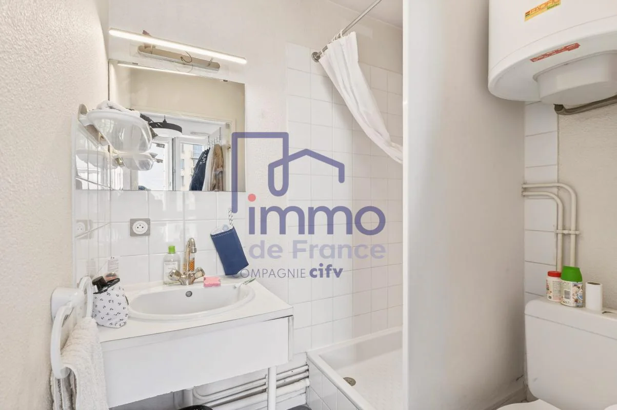 Il se compose d'une pièce principale avec kitchenette ainsi que d'une salle d'eau avec WC. Idéal pour un investisseur, le bien est vendu occupé avec un loyer de 465 € par mois hors charges.