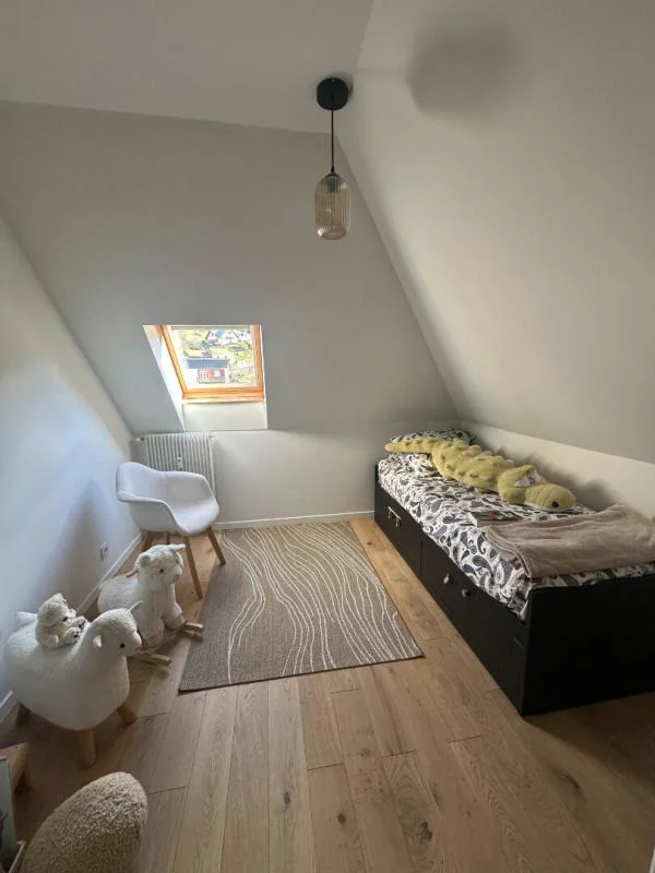 A l'étage, une grande chambre offre la possibilité d'être divisée en deux, permettant ainsi de créer un espace supplémentaire selon les envies. Un volume complémentaire peut accueillir une salle de jeux, un coin lecture, un bureau ou tout autre espace de détente, renforçant encore la modularité de ce bien.