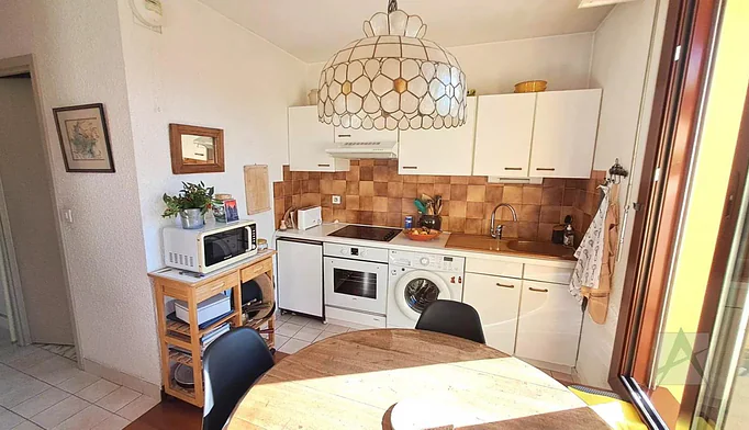 CHAMBÉRY, Allée des Bauges, dans copropriété de 2000, nous vous proposons un T2 de 50.64 m² au 5 éme étage avec ascenseur comprenant hall d'entrée avec placard, séjour avec cuisine équipée, 1 chambre avec salle de douche, wc, balcon-terrasse exposé Sud de 7.55 m² avec vue dégagée.