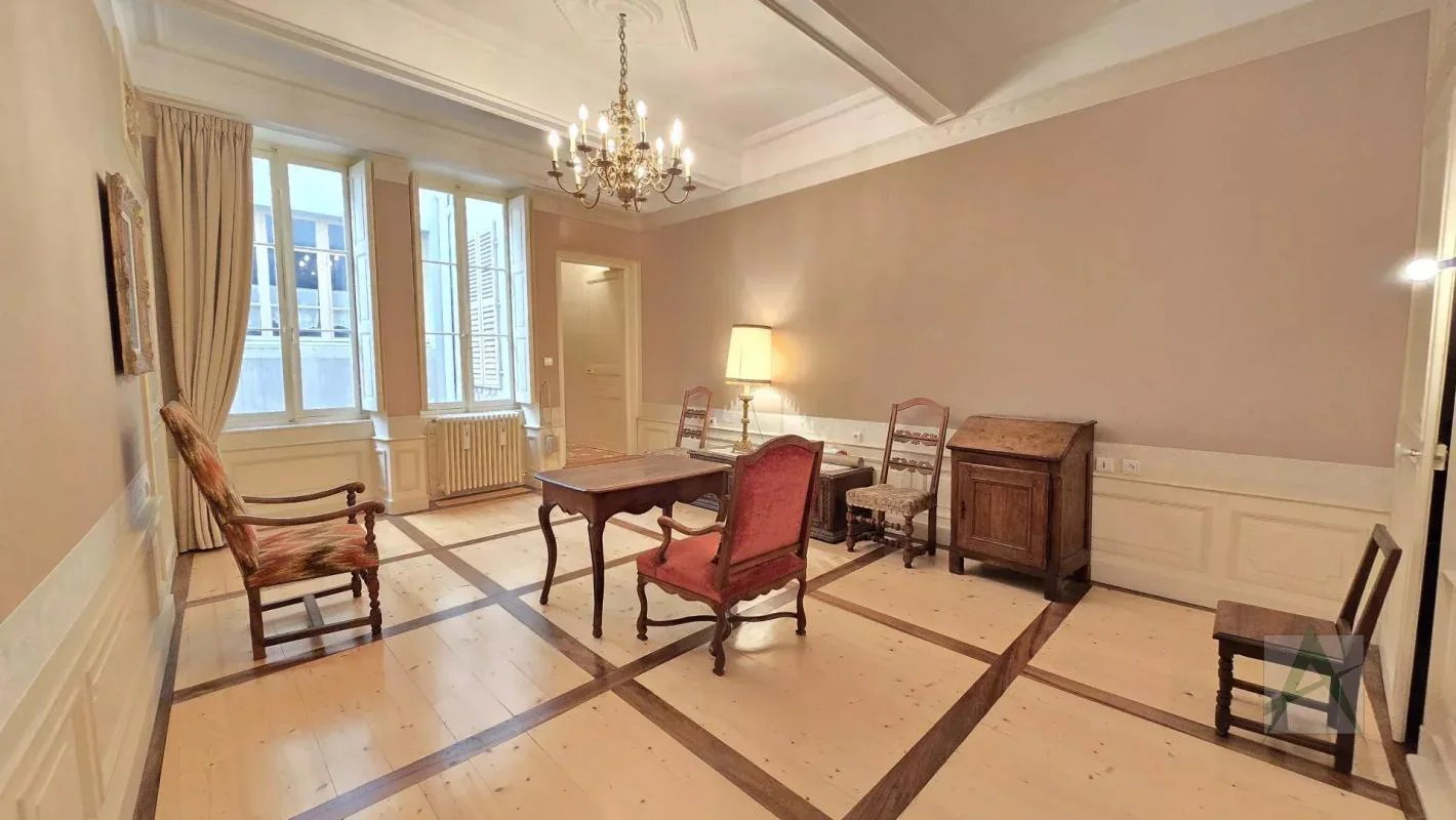 CHAMBÉRY, centre historique, place Saint Léger, venez découvrir ce somptueux et spacieux lieu de vie de 266 m² à rénover. Vaste pièce de vie de 41 m² baignée de lumière avec hauteur sous plafonds, salle à manger de 27 m². Cachet de l'ancien et moulures. Cuisine indépendante, cinq chambres, bureau, 2 salles de bains/douches. Très grande cave et grenier en complément.