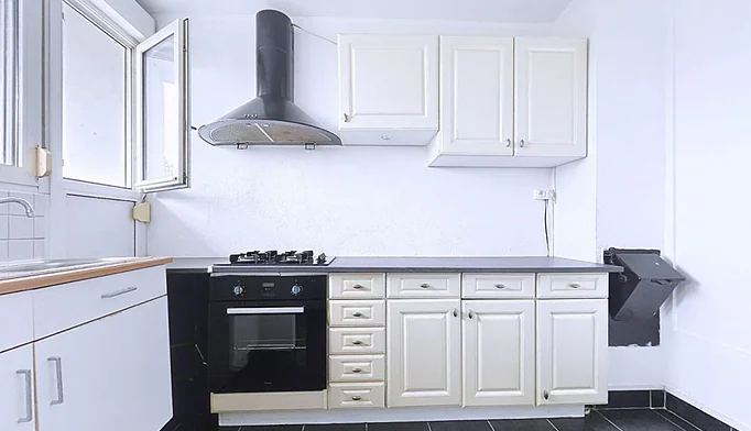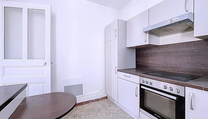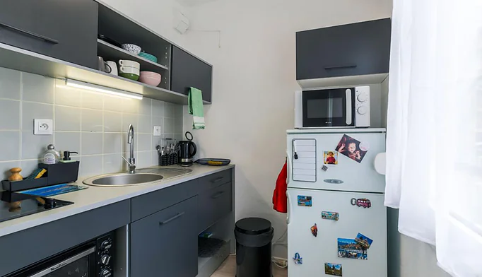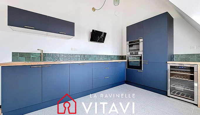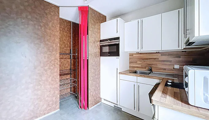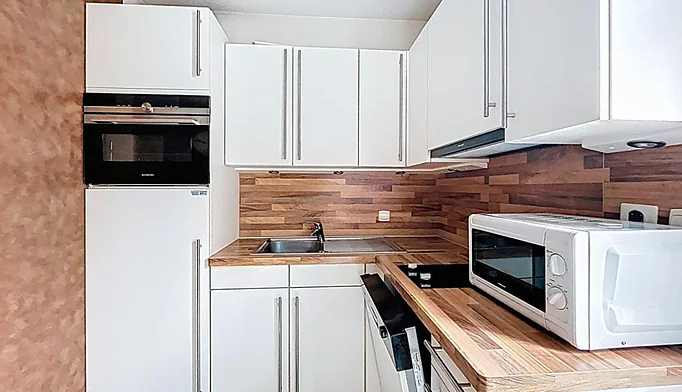 Cuisine indépendante aménagée et équipée, avec espace buanderie discret et pratique