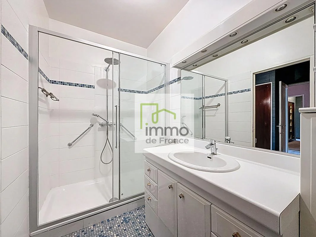 Il se compose d'un grand hall d'entrée, double séjour lumineux de plus de 40 m² avec coin cuisine, dégagement avec rangement, 3 chambres avec placards, WC séparé et de deux salles d'eau