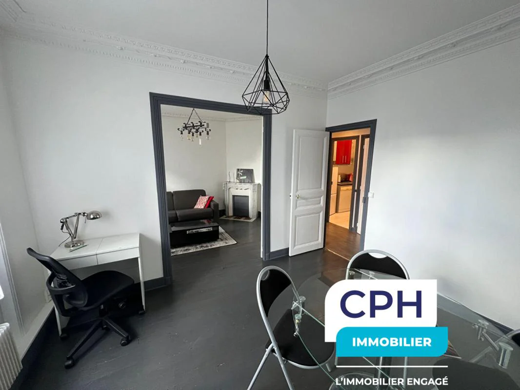 Dans un bel immeuble ancien en briques, beaucoup de charme pour cet appartement de 2/3 pièces avec parquet, moulures et cheminée, comprenant entrée, cuisine indépendante, séjour, salon, chambre, salle de bains avec WC.