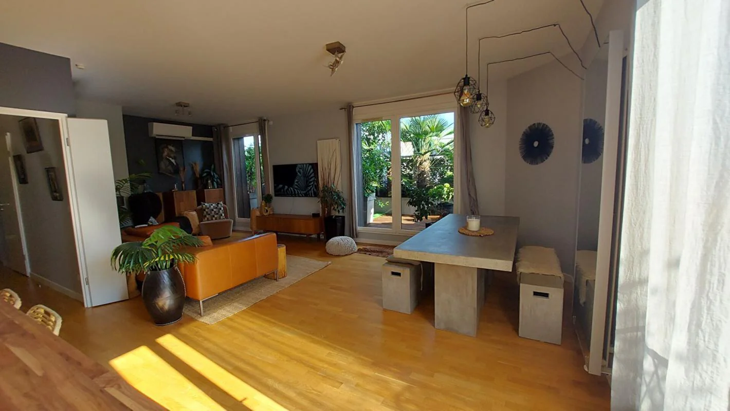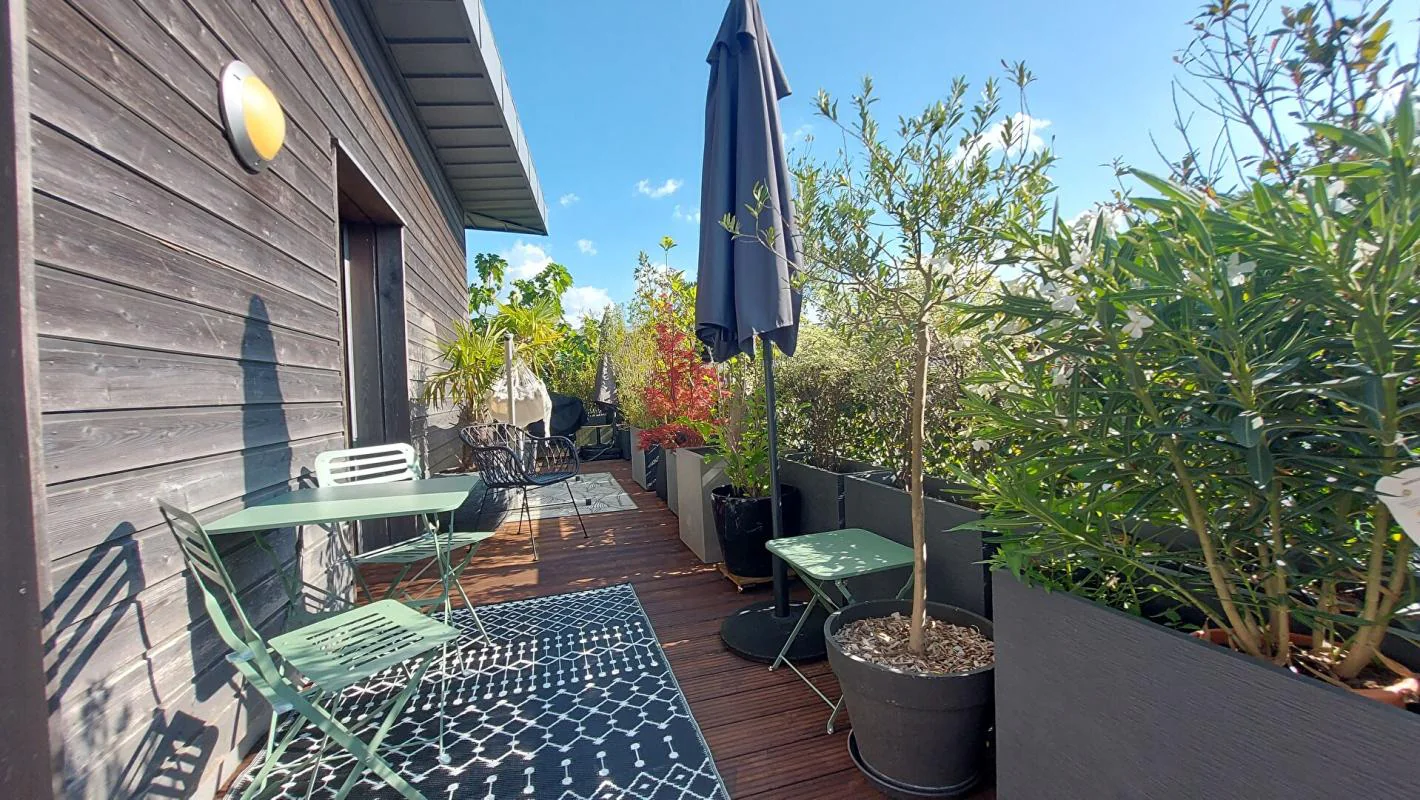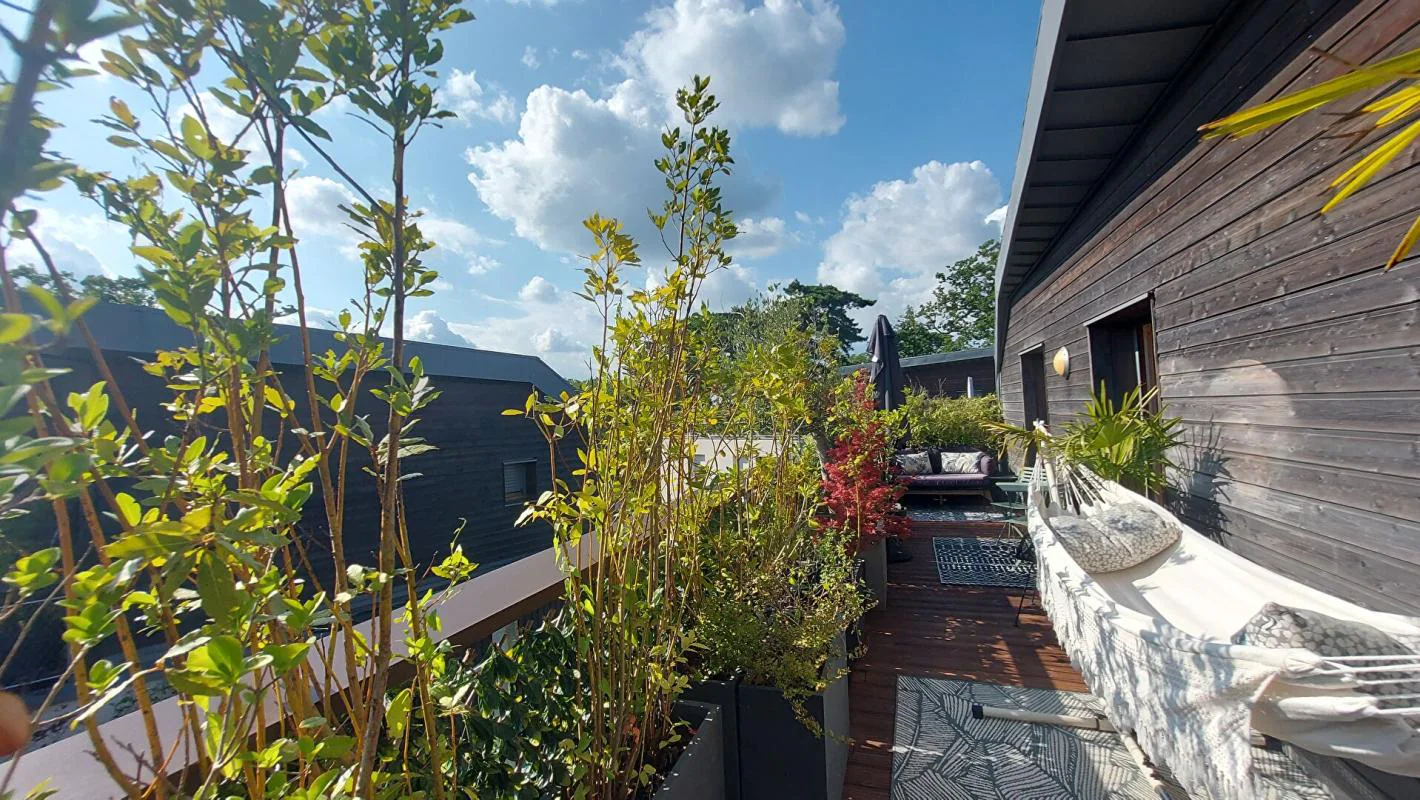 Dans une résidence contemporaine de standing, venez découvrir cet appartement, à la décoration élégante et soignée, un véritable havre de paix perché au DERNIER ETAGE qui vous offrira un cadre de vie exceptionnel. Une terrasse en L de 48m², végétalisée à souhait, vous offrira un espace de vie extérieur pour vos repas avec une exposition privilégiée sud-ouest. Une spacieuse pièce de vie de 43m² ouverte sur une cuisine moderne entièrement équipée bénéficiant de larges baies vitrées. Pour la partie nuit, trois chambres confortables et agréables vous accueillent, dont une suite parentale et sa salle d'eau, une salle de bains avec WC, des toilettes séparées. Nombreux rangements. 2 places de parking (avec une borne de recharge ) et une cave en sous -sol apportent un confort maximal.