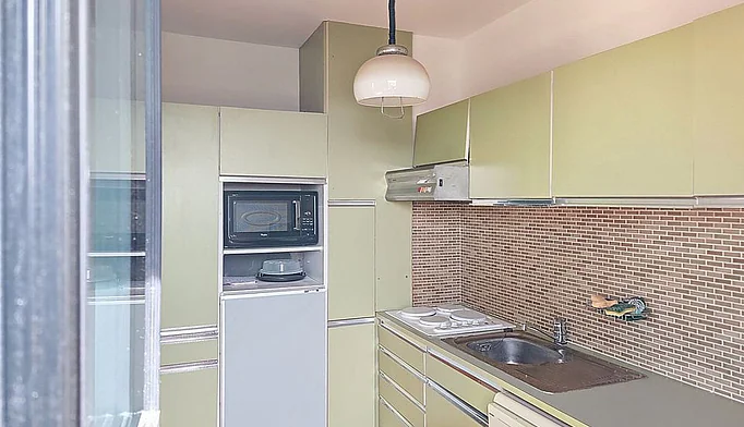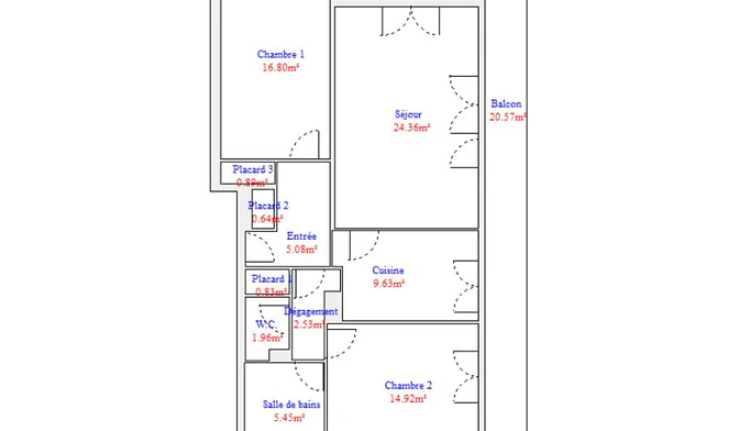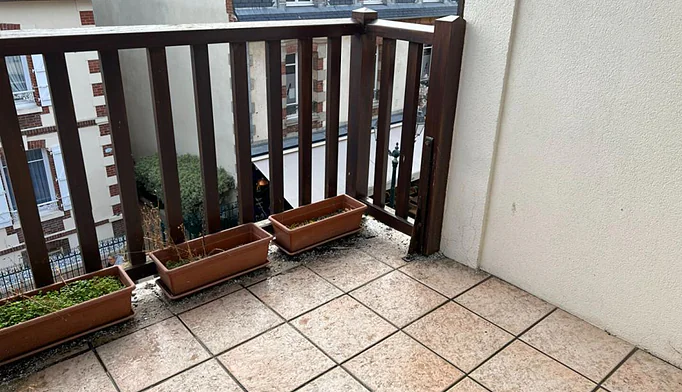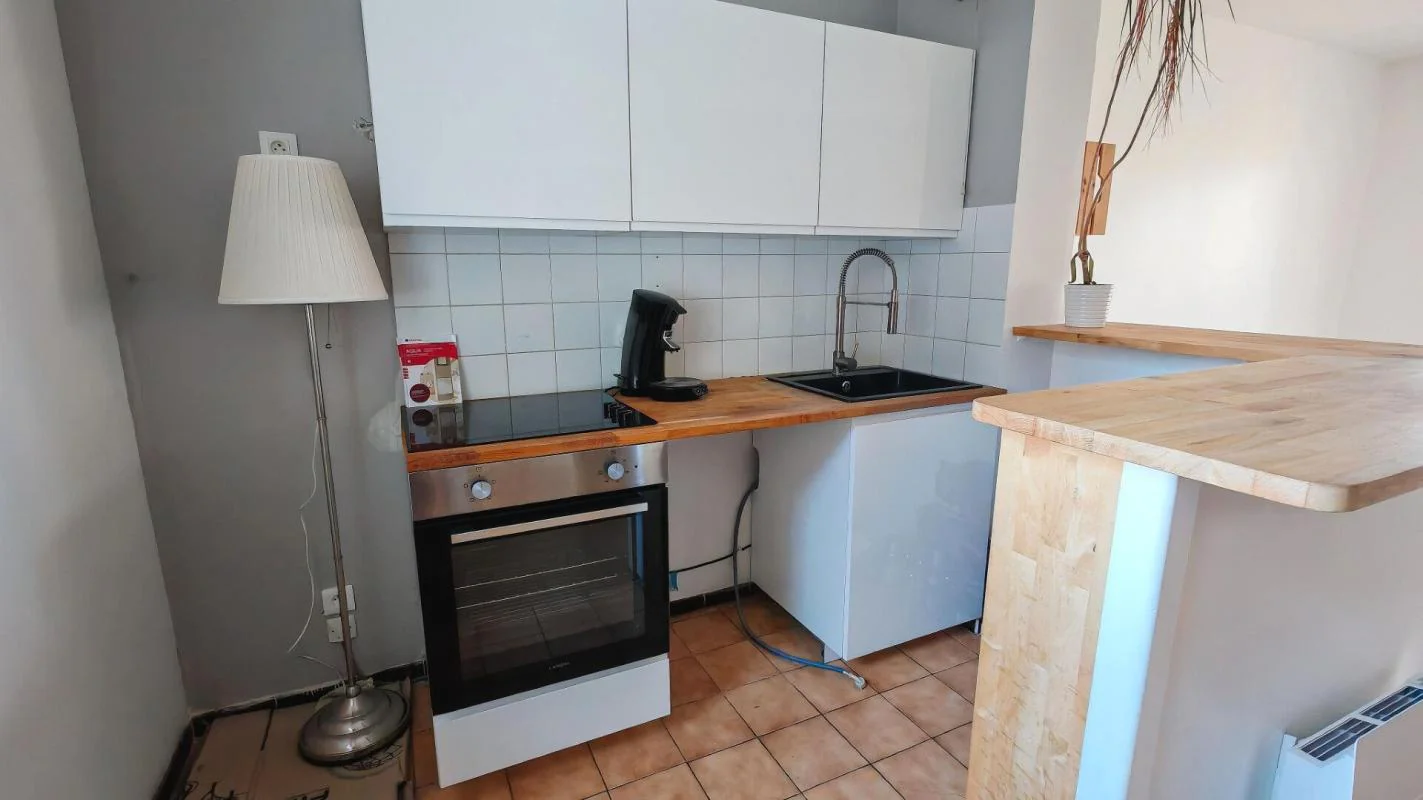 Comprenant : Entrée avec grands placards, salon -séjour avec cuisine, chambre, salle de douche, w-c. Balcon.