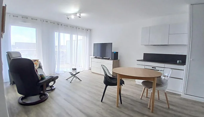 Très bel appartement de type 2 PP disposant d'un entrée, pièce de vie avec cuisine américaine spacieuse et lumineuse donnant sur un balcon bien exposé, chambre, salle de douche, WC. Le tout en parfait état.