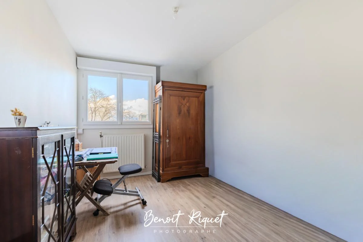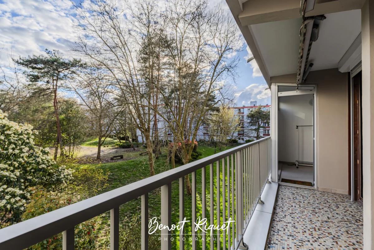Le séjour et la cuisine sont orienté côté sud avec un accès direct sur la loggia et le balcon qui fait face au parc boisé. Vous apprécierez l'ombre des arbres l'été et de pouvoir profiter du balcon sans aucun vis-à-vis. Cet appartement lumineux et fonctionnel est idéal pour un couple avec enfants, une personne seule ou dans le cadre d'un investissement locatif.