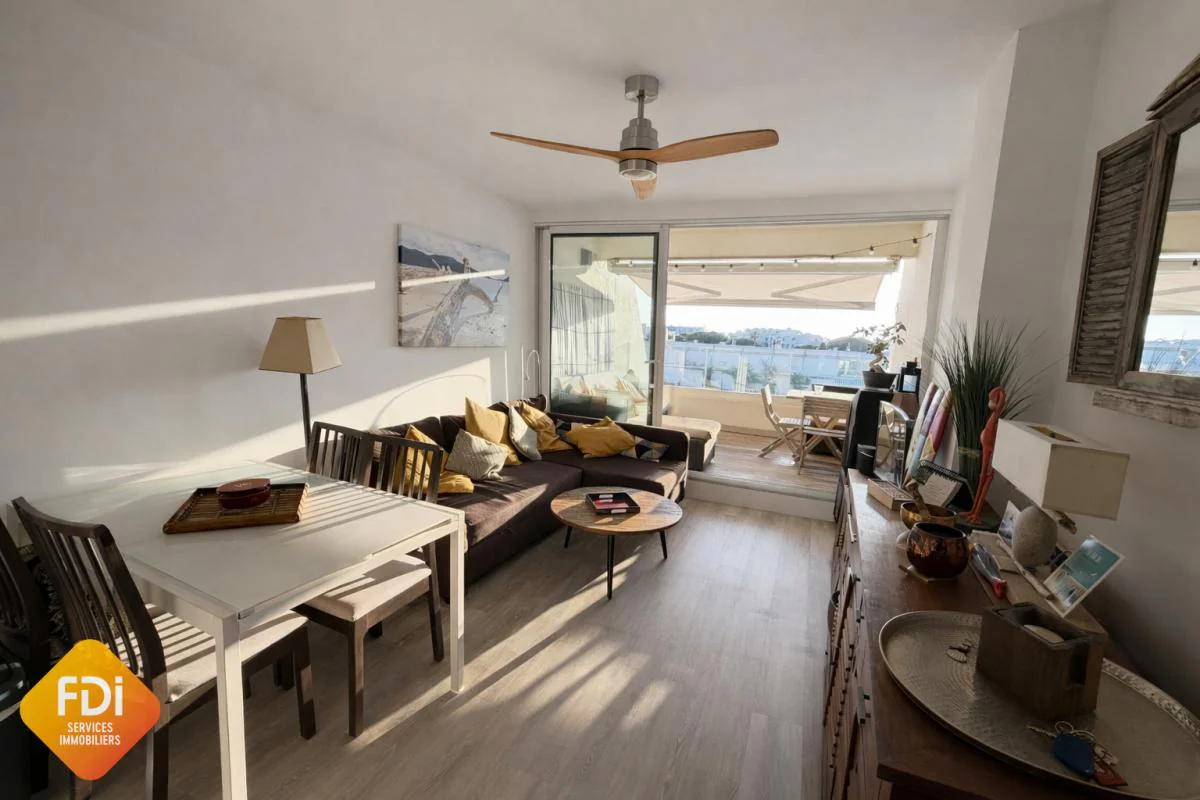 Votre Agence FDI SERVICES IMMOBILIERS vous présente ce magnifique appartement de type 2 en dernier étage, d'une superficie de 35m2. Traversant avec une charmante terrasse en bois exposée Sud-Ouest, vous bénéficierez d'une vue imprenable sur le port et d'une vue mer latérale extraordinaire ! Ce bien est proposé avec une place de parking privée ainsi qu'un appontement de16,50m2. En parfait état, cet appartement n'attend que vous pour profiter pleinement de cet environnement magique. Les informations sur les risques auxquels ce bien est exposé sont disponibles sur le site Géorisques : www.georisques.gouv.fr. Contactez Martine PERLES RSAC 379 649 148 au O6 09 89 20 00 ou O4 99 74 25 23