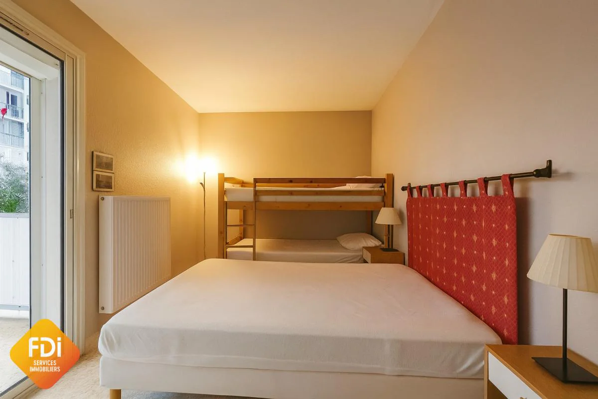 Situé au coeur d'une résidence fermée et sécurisée, cet appartement de type P2 offre un cadre de vie idéal alliant confort, tranquillité et proximité immédiate des commodités. À seulement quelques pas de la mer et du centre-ville, il bénéficie d'un emplacement privilégié.