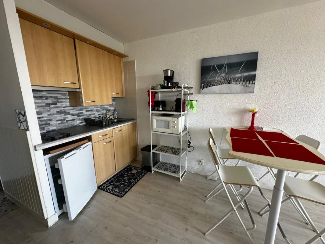 Cap d'Agde, première ligne vue mer: appartement d'une surface de 31.08m² comprenant une entrée avec placard, une salle de bains avec wc, une cuisine équipée, un séjour avec loggia intégrée et vue dégagée sur la mer. L'appartement est situé au 1er étage d'une résidence à faibles charges. Vendu avec son parking privé et sécurisée. La résidence est située sur le secteur du Mole, en première ligne mer. Contact: Mélanie GARCIA: 06.07.31.14.09.