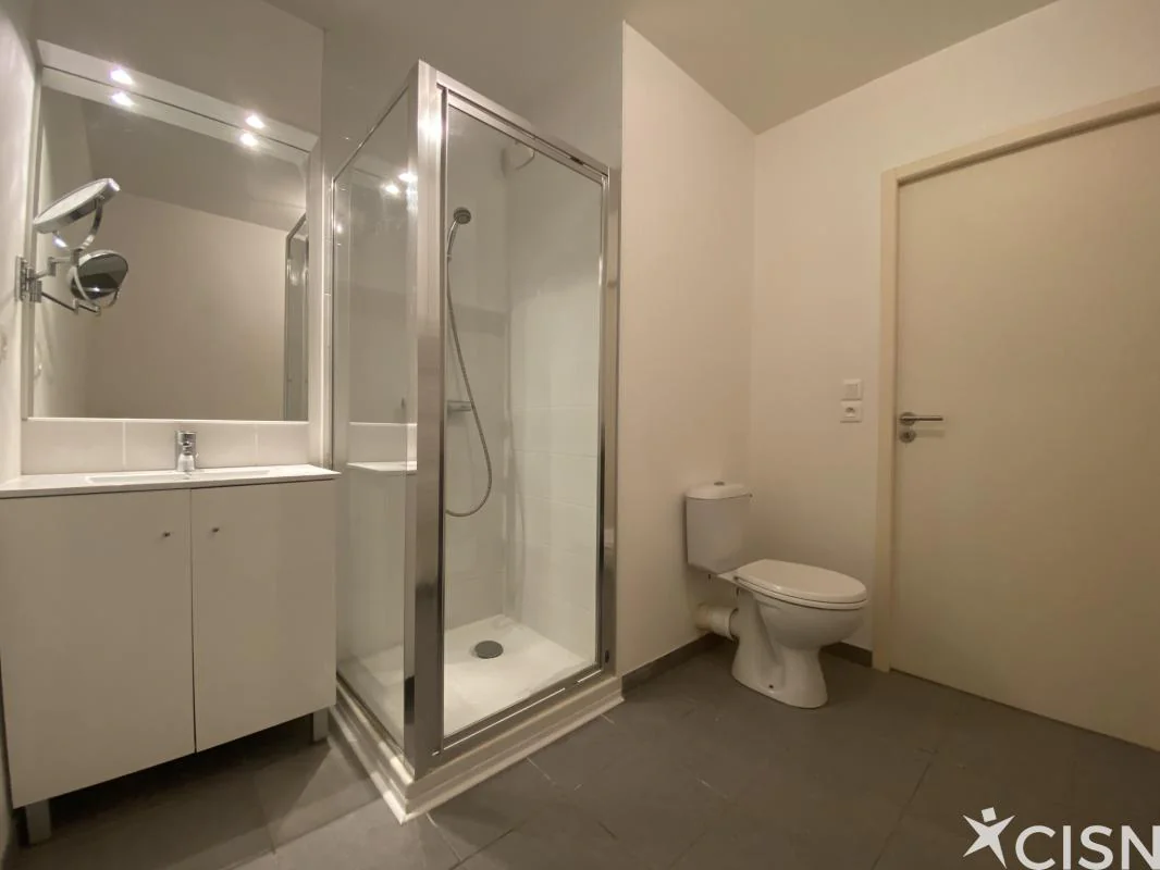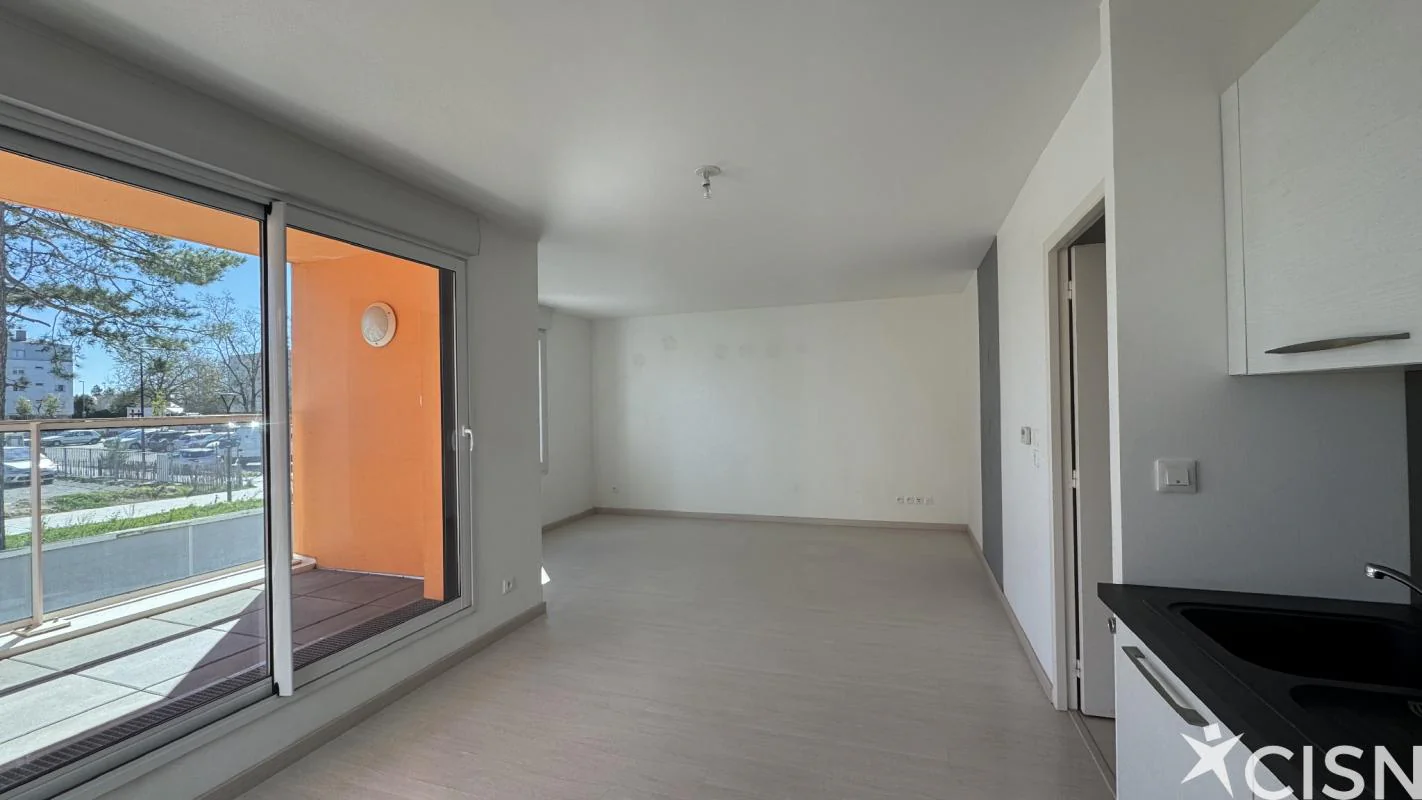 Au calme, dans un immeuble de 2013/2015, au 1er étage avec ascenseur, T2 (env. 50 m2) comprenant : entrée, pièce de vie orienté S/E s'ouvrant sur un balcon et une terrasse (soit env. 70m2), cuisine ouverte aménagée et équipée, une salle d'eau avec WC, une chambre. Un emplacement de parking extérieur et un local vélo commun complètent ce bien.