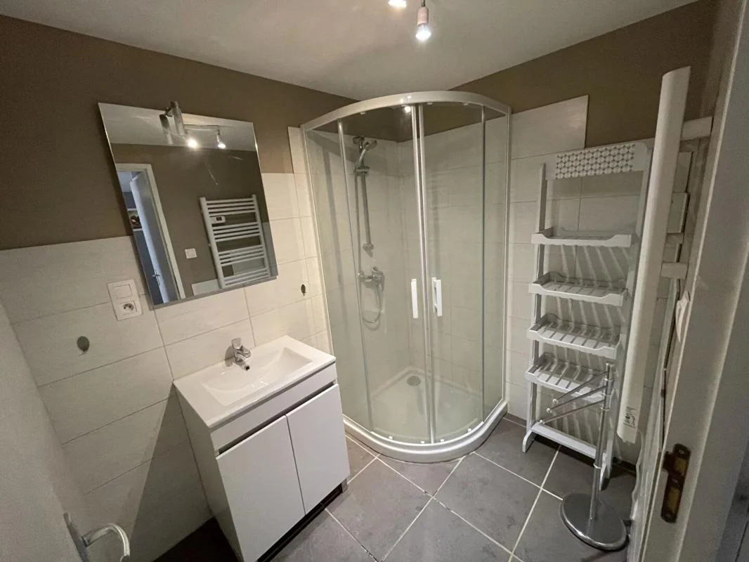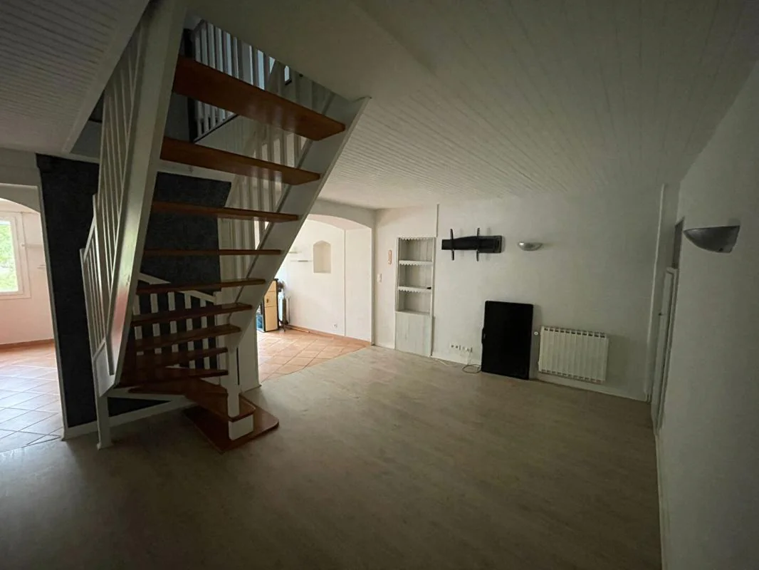 Séjour avec cuisine ouverte aménagée et équipée , une chambre avec rangements, une chambre dite "aveugle" avec rangements, une salle d'eau, un WC séparé.