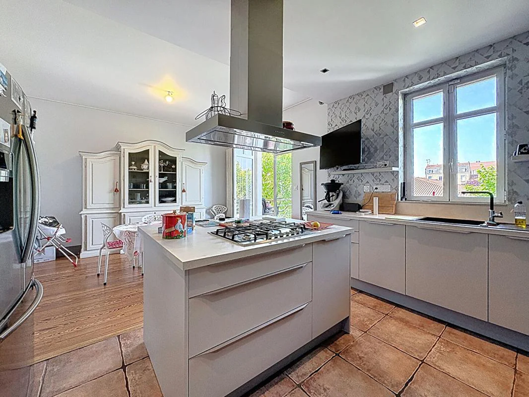 A VENDRE A BOURG EN BRESSE, à deux pas du centre ville, et de la gare, proche de toutes commodités sur un terrain clos et arboré de 545 m² au calme, venez découvrir cette très belle maison de type 10 rénovée avec matériaux de qualité, alliant le charme d' une maison bourgeoise à la modernité qui la rend unique.