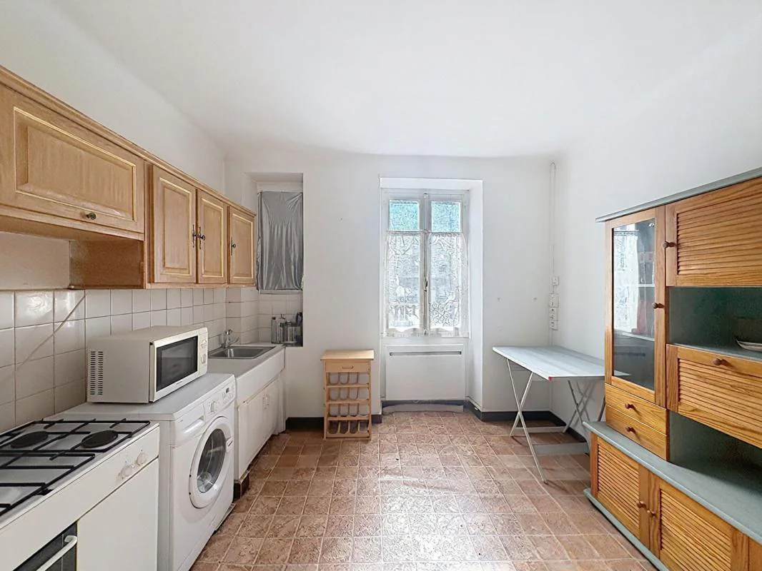 A vendre au coeur du village de Cerdon dans un cadre paisible charmante maison individuelle de 83m2 comprenant un hall desservant une cuisine indépendante et une chambre , double séjour, une deuxième chambre, salle de bain, cellier ,WC .. possibilités d' aménager les combles.