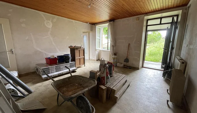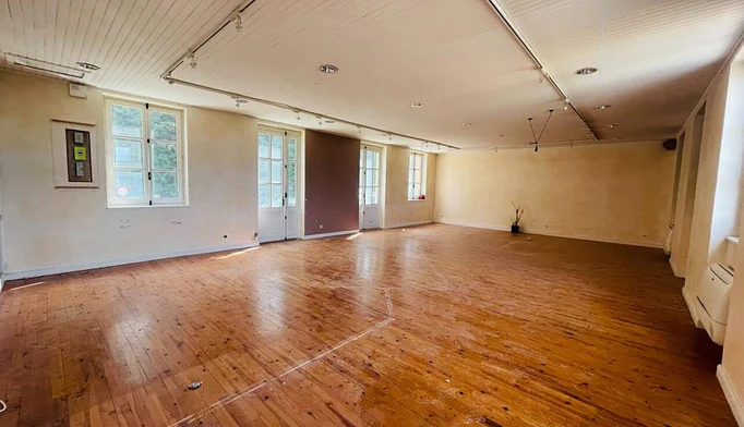 Premier étage : Un hall dessert une grande pièce de vie de 45 m² avec cuisine équipée, idéale pour une seconde habitation, un gîte ou un espace familial.