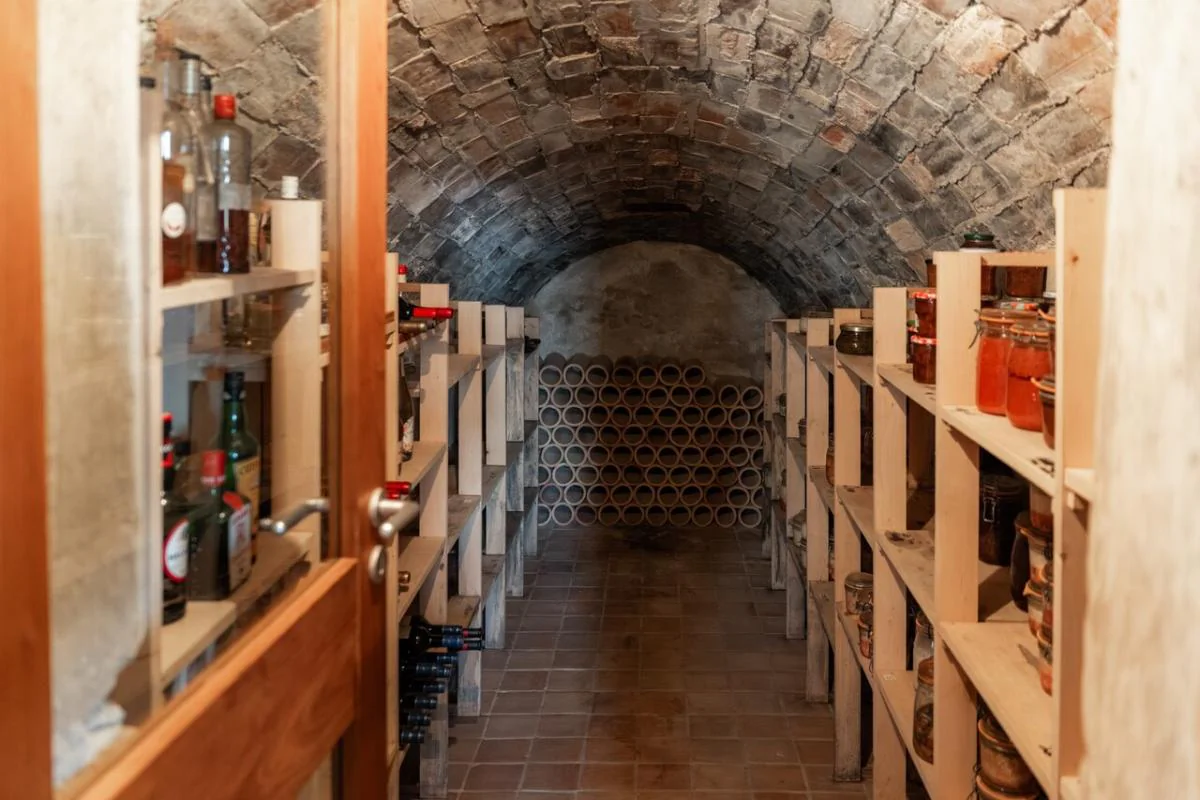 Rez-de-chaussée : Vous serez séduits dès l'entrée par une spacieuse cuisine équipée de 40 m², prolongée par un cellier. Le salon / salle à manger de 50 m², habillé de tomettes et de plafonds à la française en châtaignier, dégage une atmosphère chaleureuse. Une cave voûtée en pierre rappelle le caractère authentique de la bâtisse.