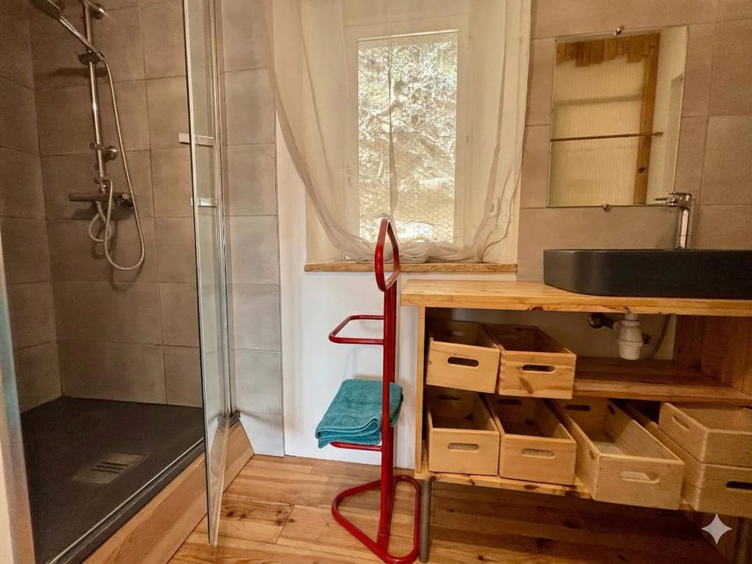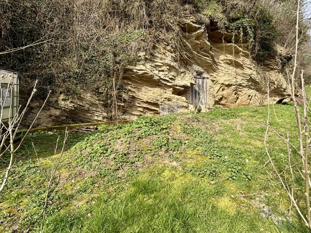 En annexes : Un hangar avec toiture amiantée de 90 m² et une petite cave en sous-sol.