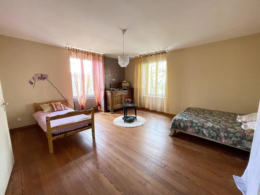 Charmante bâtisse mitoyenne alliant le cachet de la pierre à des prestations de qualité, sur une surface d'environ 275,56 m². Au rez-de-chaussée, vous découvrirez un vaste hall d'entrée, une cuisine équipée fonctionnelle, une buanderie, un salon agrémenté d'un poêle à granulés, ainsi qu'une première chambre et une salle d'eau avec WC. À l'étage, un studio indépendant de près de 54 m², avec sa propre entrée et une terrasse privative, offre de belles possibilités. Ce niveau comprend également quatre grandes chambres (entre 19 m² et 26,5 m²), ainsi qu'une salle de bains. Le dernier étage propose un grenier aménageable de 126 m², laissant entrevoir un important potentiel d'extension ou de création d'espace supplémentaire. Côté annexes, la propriété dispose de plusieurs dépendances : caves, ateliers...Une piscine hors-sol vient parfaire l'ensemble. L'ensemble repose sur une parcelle de terrain d'environ 2,9 hectares. Toiture refaite - Source - Double vitrage - Volets roulants électriques - Chauffage poêle à granulés et radiateurs électriques - Microstation. Ne manquez pas cette opportunité ! Contactez-nous pour plus d'informations et pour organiser une visite.