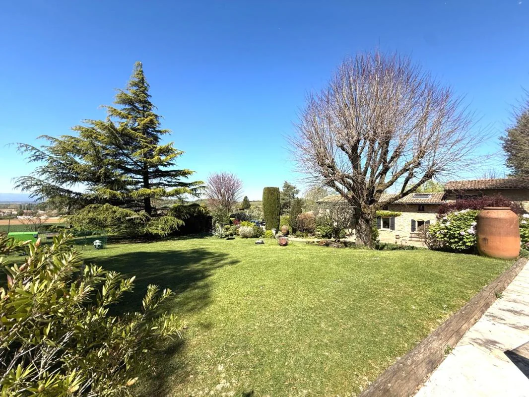 Réf 5110 : MONTVENDRE : VOUS RECHERCHEZ UNE MAISON DANS UN CADRE CHAMPETRE SANS VOISIN MAIS PROCHE DE TOUTE LES COMMODITES ? VENEZ VISITER CETTE BELLE PROPRIETE SUR LES HAUTEURS D UN JOLI VILLAGE PROVENCAL ( 15 Kms Valence) . Au coeur d'un magnifique parc ent clos d'environ 5000 M² ( puit, arrosage intégré) découvrez cette BATISSE EN PIERRE de 220 M² habitable. Plus de 70 M² de pièces de vie ( Cuisine avec cuis incorporée ouverte sur Salon/séjour avec cheminée insert) vous permettront de recevoir amis et famille, 2 chambres, chacune avec salle d'eau au RDC. Au 1er étage, mezzanine avec coin bureau, une chambre avec dressing (poss sdb) et une suite parentale climatisée ( ch + SDB + 2 dressings) - 2 garages, un atelier, 2 abris vous permettront de tout ranger . Sans oublier une belle terrasse plein sud, un préau, une piscine avec dôme rétractable, un pool house pour tous vos moments de convivialité. Ce bien est en parfait état dont la toiture de 2020. Vue dominante sur village à l'ouest et Vercors à l'est. Nous vous attendons .. AGENCE VIC IMMOBILIER 04.75.05.06.16