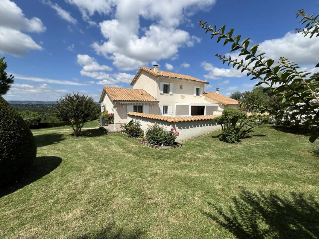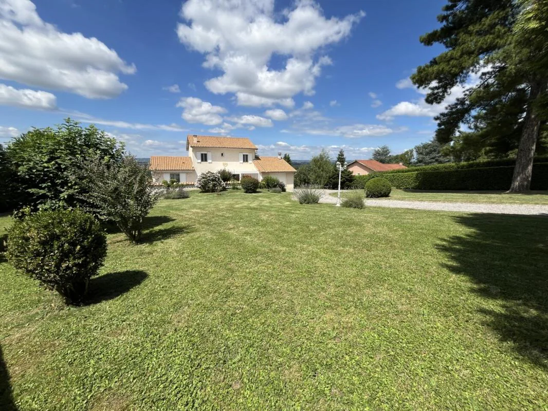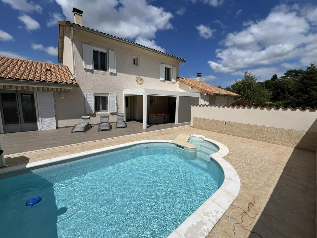 Villa de 147 m² habitables, offrant de belles prestations, située au cœur d'un parc paysager de 3 678 m², arboré et fleuri, avec piscine couverte, pergola bioclimatique et vue dominante sur la Valloire.