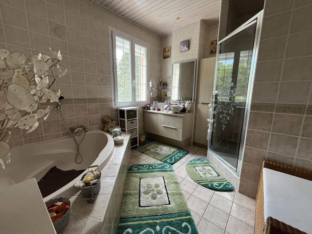 Au rez-de-chaussée, vous trouverez une cuisine équipée, un vaste salon/séjour avec cheminée, une véranda chauffée, ainsi qu'une suite parentale avec salle d'eau.