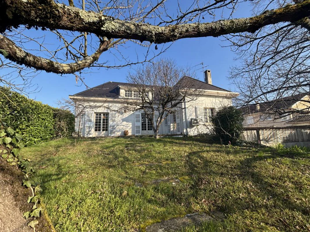 Maison de 1968 d'une surface de 163 m² composée : au rez-de-chaussée, cuisine, salon avec une très belle cheminée, 3 chambres, salle de bains, à l'étage, coin bibliothèque, 2 chambres, bureau, salle de bains, sous-sol complet, magnifique parcelle de 1781 m² avec piscine.