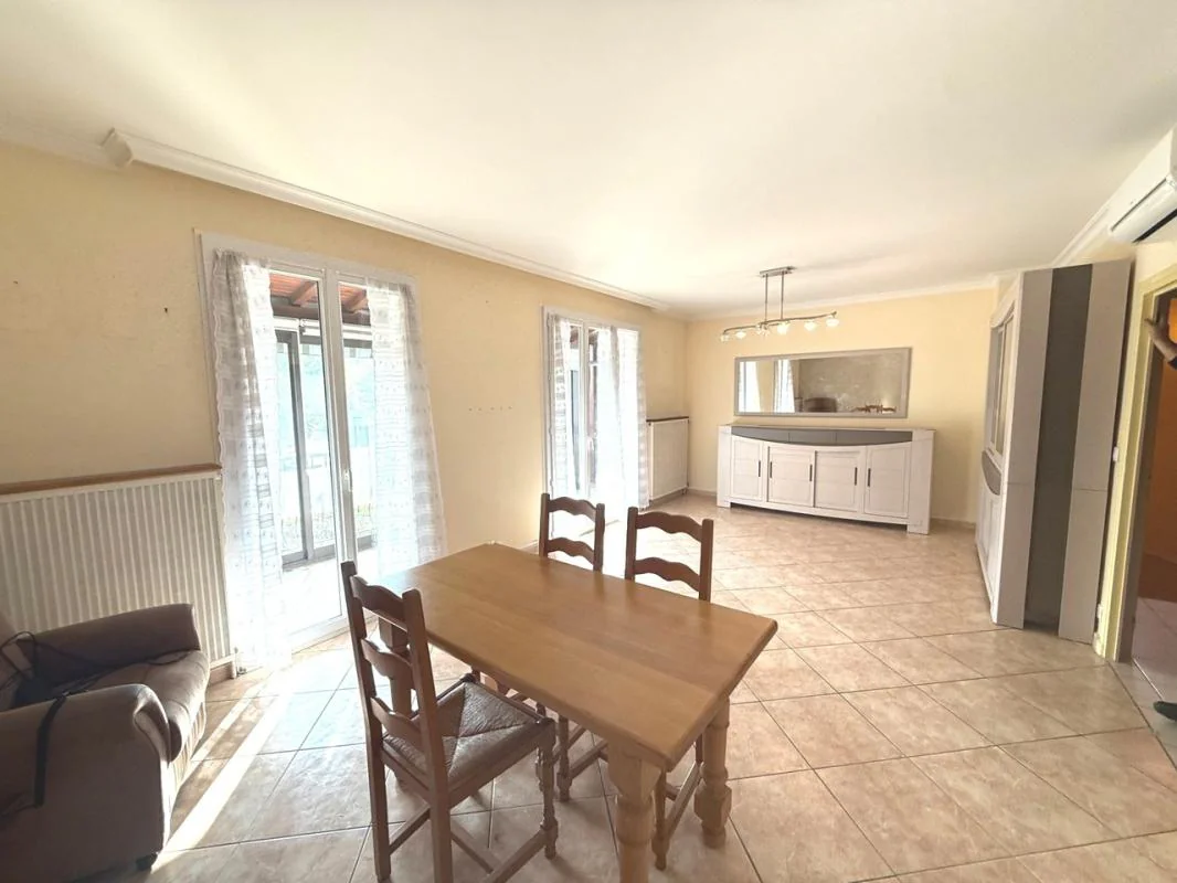 Réf 5082: ROMANS QUARTIER ETOURNELLES : Venez découvrir cette maison de 120 M² habitable dans ce quartier prisé de Romans. Vous découvrirez une habitation très lumineuse comprenant au 1er étage : une cuisine équipée de 11 M², un salon/séjour de 26 M² ( clim réversible) ouvrant sur une terrasse-véranda de 15 M² avec vue Vercors, 2 chambres de 13M² (clim réversible) , une salle d'eau, un wc. Au rez de chaussée : hall d'entrée, une suite parentale de 18 m² ( chambre + SDB + placard) , une lingerie . En annexe : garage de 23M², une cave. Les plus : Nombreux placards, Menuiseries PVC, chaudière gaz condensation 2021, portail garage et jardin électriques. Maison très bien entretenue. Jardin 310 M² clos. A VISITER AVEC VIC IMMOBILIER : 04.75.05.06.16