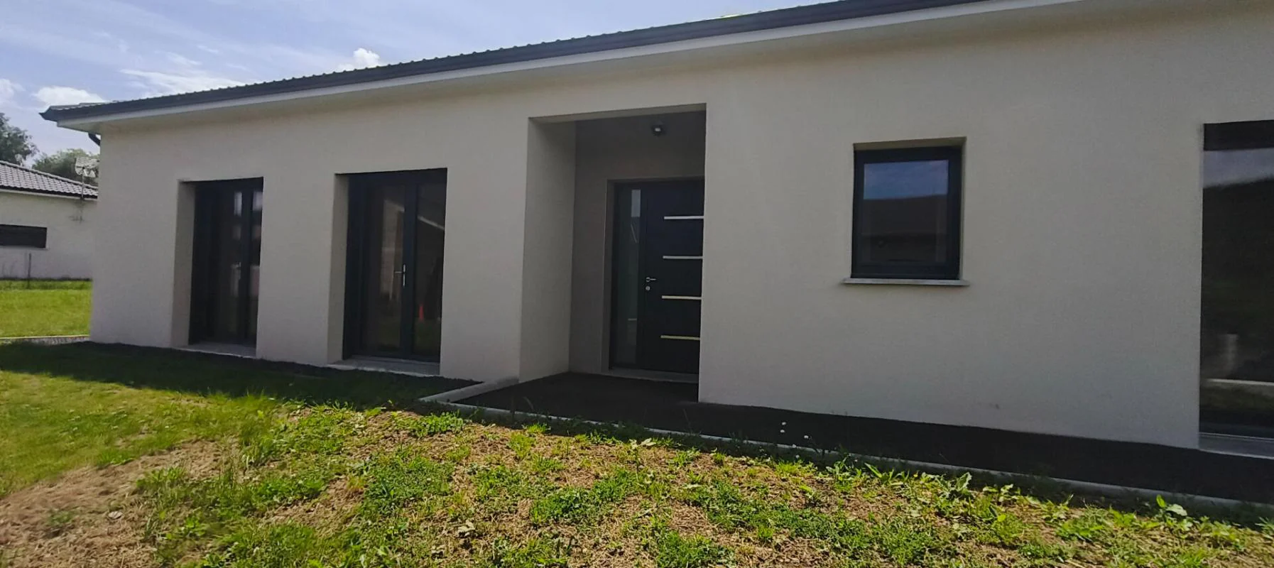 Cette habitation contemporaine de 115 m² habitables construit en 2024 vous propose un séjour-cuisine de près de 61 m² entièrement équipé, 3 chambres avec dressings intégrés, une grande salle de bains avec baignoire et douche, ainsi qu'une buanderie. Vous disposerez en plus d'un garage de 35 m² et d'un terrain clos et engazonné de 1267 m².