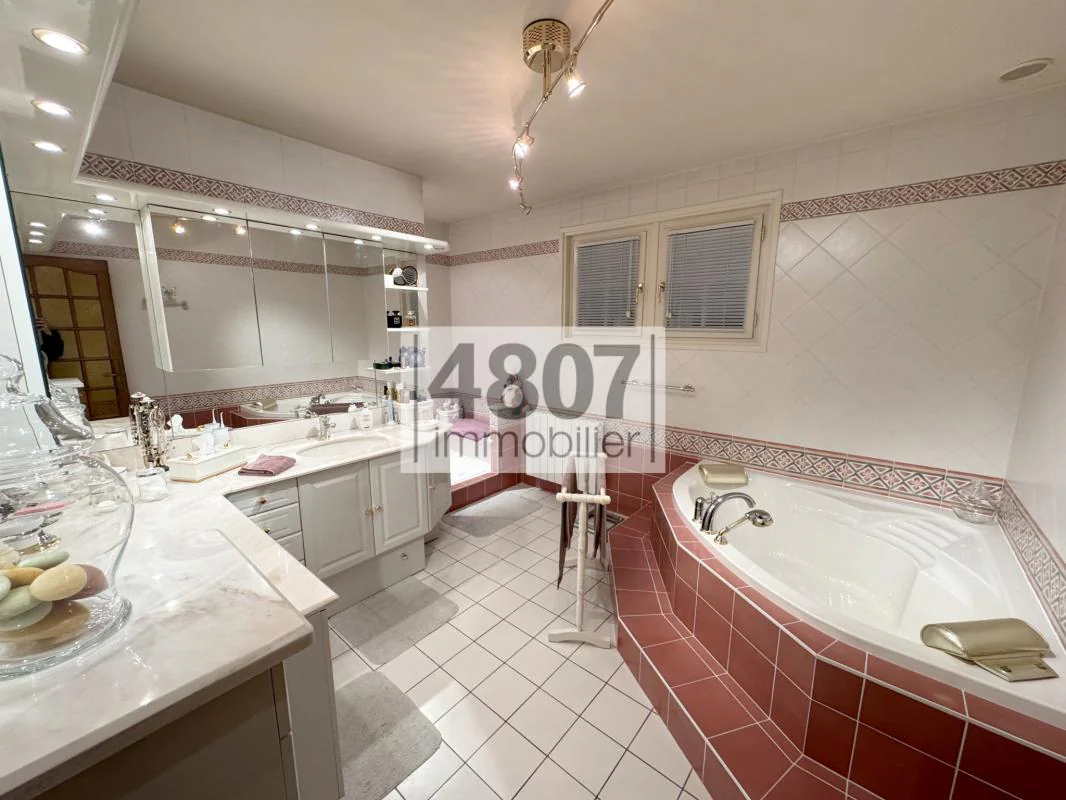 À l'étage principal, vous profiterez d'une spacieuse entrée, d'un séjour lumineux ouvrant sur une terrasse, ainsi que d'un balcon exposé plein sud avec vue dégagée, d'une cuisine séparée et équipée, d'une vaste chambre avec placard intégré d'une surface de 16 m2, d'une pièce dressing, d'une salle de bains avec douche, baignoire et double vasques, ainsi que d'un WC indépendant.