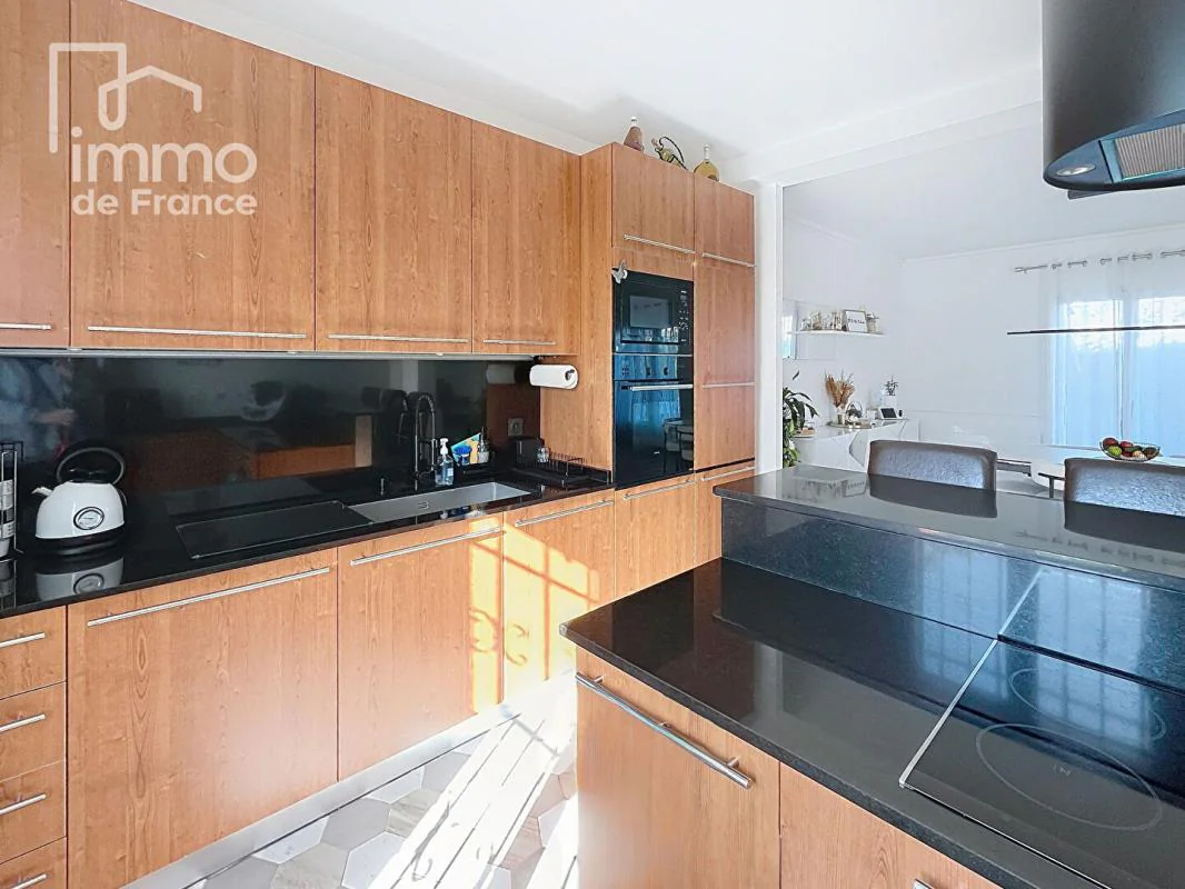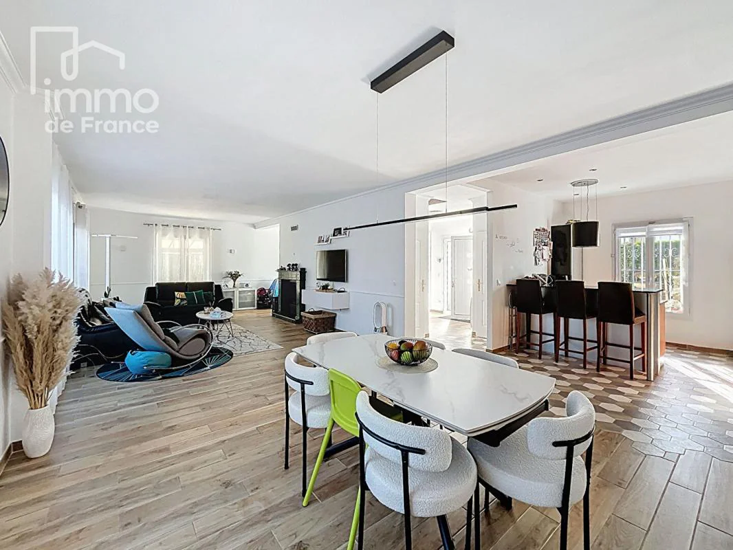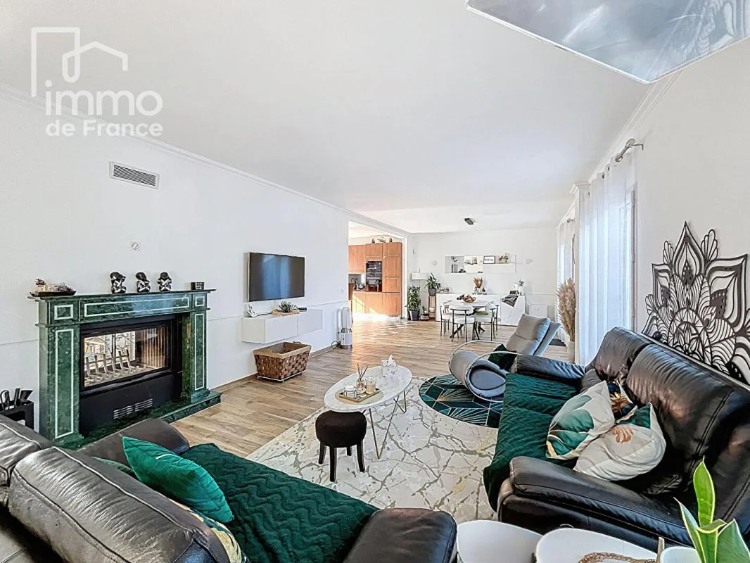 Dès l'entrée, vous découvrez un vaste espace accueillant qui s'ouvre sur un séjour lumineux de 46 m² avec cheminée, idéal pour recevoir famille et amis. La cuisine ouverte, entièrement équipée et parfaitement fonctionnelle, prolonge harmonieusement l'espace de vie et crée une atmosphère conviviale et contemporaine.