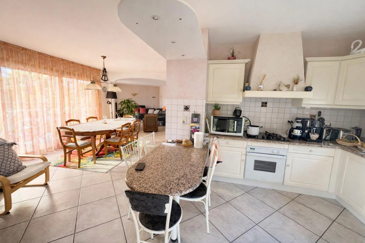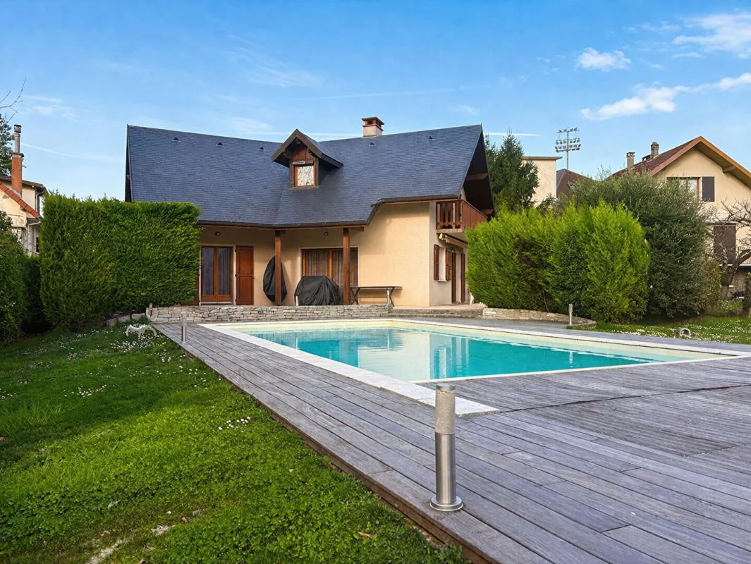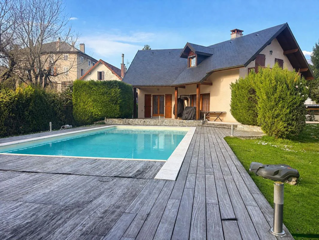 Chambéry - à deux pas de l'hypercentre, très belle villa en parfait état de 173m² composé d'une belle pièce de vie avec cuisine ouverte et donnant sur une terrasse plein Sud, au calme, prolongée d'une piscine. 4 chambres, deux salles de bains, buanderie, et sous sol complet. Maison de 1998 en parfait état, aucun travaux à prévoir. Terrain plat, au calme et lumineux.