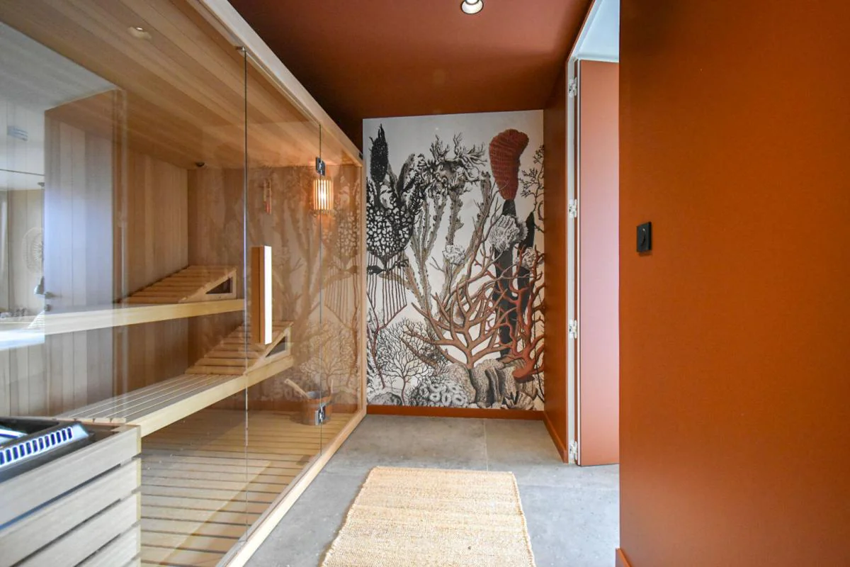 Le niveau inférieur accueille deux suites supplémentaires, dont une avec salle de bains complète, ainsi qu'un salon ou bureau (avec possibilité de créer deux chambres), ouvrant sur la terrasse, la piscine et le terrain de pétanque. Un espace bien-être avec sauna et hammam vient compléter harmonieusement l'ensemble.