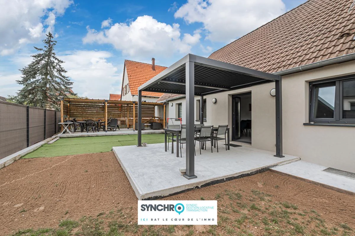 Découvrez cette charmante maison de plain-pied idéalement située au calme, au fond d'une impasse, sur un terrain de 462 m². D'une surface habitable de 119 m², elle offre un cadre de vie agréable et fonctionnel, parfait pour une famille en quête de tranquillité. Dès l'entrée, vous serez séduit par une distribution fluide des espaces. La cuisine indépendante permet un accès direct au garage, garage qui dispose d'un espace chaufferie/adoucisseur et offre également un potentiel de rangement en mezzanine. Le séjour lumineux de 28 m² s'ouvre sur le jardin aménagé d'une pergola et d'un espace couvert. La maison dispose, d'une salle de bains ainsi qu'un WC séparé, trois chambres dont une suite parentale avec salle d'eau privative et WC, garantissant intimité et confort, à cela s'ajoute un bureau en mezzanine de 17 m². Une maison aux beaux volumes, bien agencée et située dans un environnement paisible une opportunité à ne pas manquer.