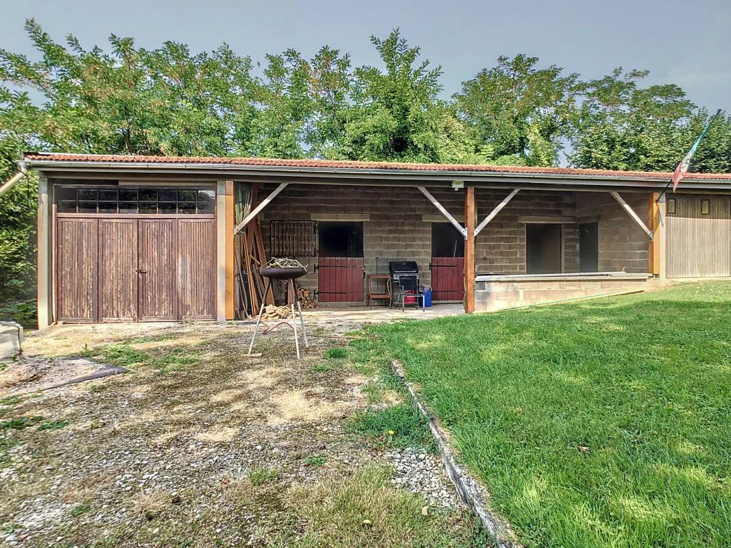 La maison principale s'accompagne d'un impressionnant garage attenant de 79 m2, ainsi que d'anciens box à chevaux, aujourd'hui aménagés en annexes aux possibilités multiples : espace professionnel, atelier d'artiste, dépendances ou projets personnels.