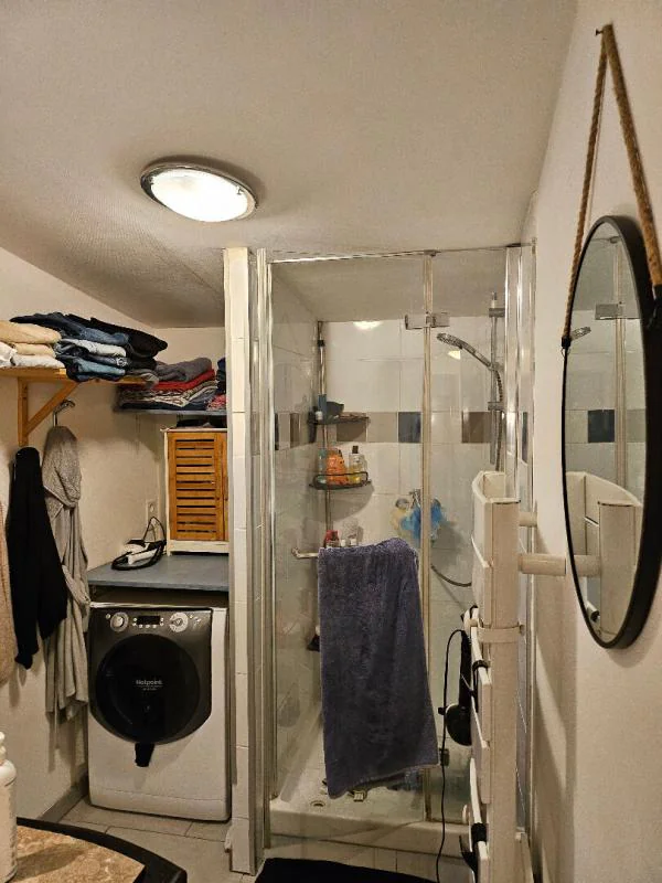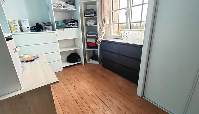 Elle s'ouvre sur une entrée avec placard, offrant un espace de rangement pratique dès l'arrivée.