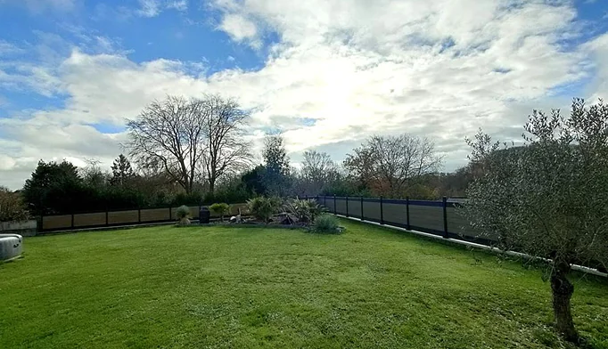 La maison est édifiée sur un terrain de 2 500 m², sans vis-à-vis, entièrement clos et arboré, avec un jardin plat.