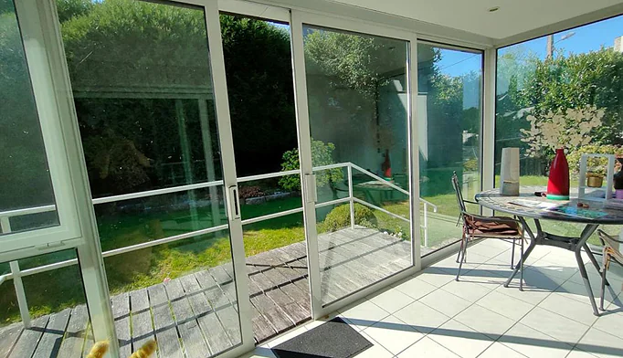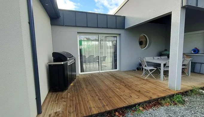 De larges ouvertures donnent, d'un côté, sur un patio et, de l'autre, sur une grande terrasse offrant une agréable vue sur le jardin, sans aucun vis-à-vis.