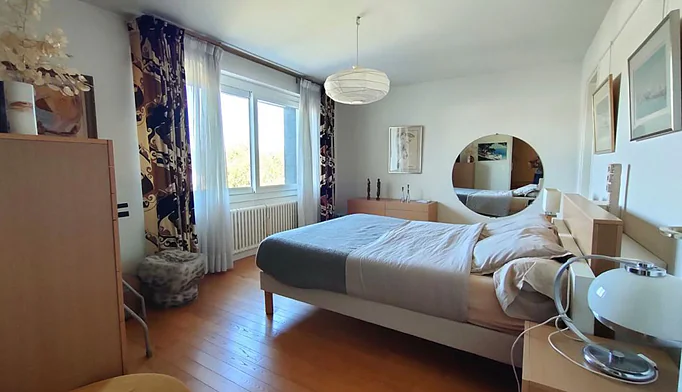 Une vaste pièce supplémentaire peut faire office de bureau ou de chambre. L'espace nuit se compose de trois chambres, dont une suite parentale avec dressing et salle d'eau, d'une salle de bains ainsi que de WC séparés.