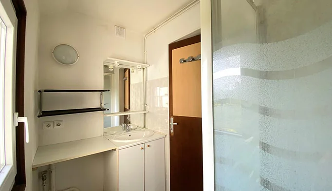 La maison dispose de deux chambres, offrant des espaces nuit agréables, ainsi qu'une salle de douche fonctionnelle.