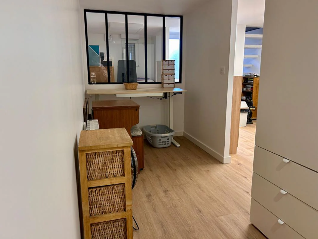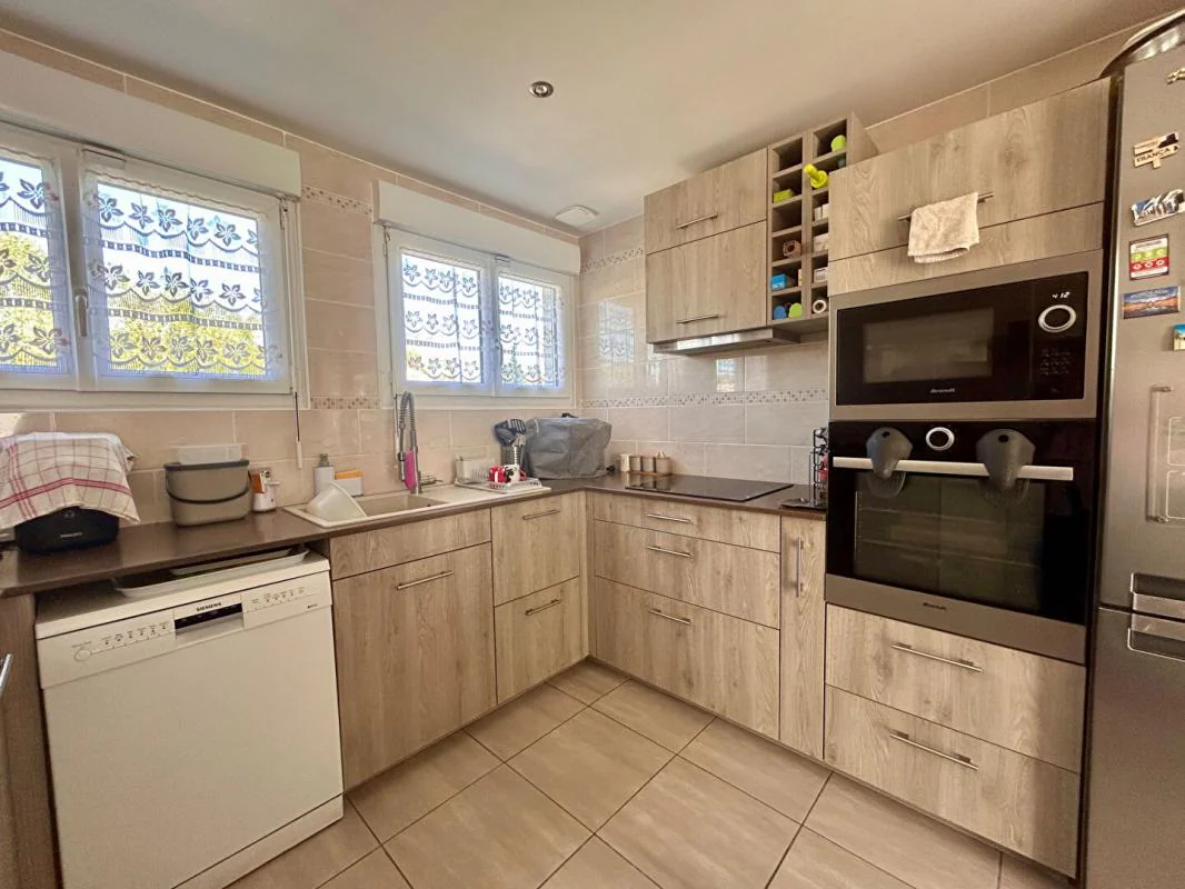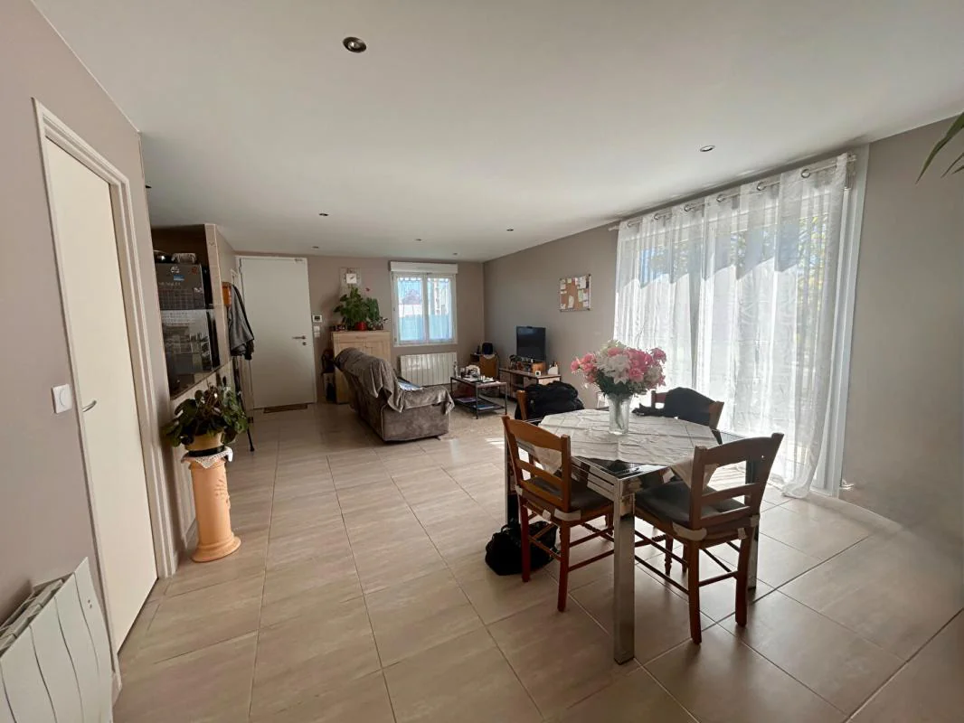 Dès l'entrée, vous découvrirez un bel espace de vie d'environ 30 m², baigné de lumière naturelle, comprenant un séjour convivial et une cuisine ouverte, aménagée et récente. Cet espace moderne et chaleureux est parfaitement pensé pour le quotidien comme pour recevoir. Il s'ouvre directement sur une terrasse extérieure, idéale pour vos repas en famille ou entre amis aux beaux jours.