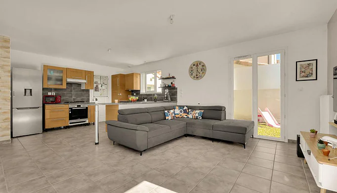 Dès l'entrée, vous découvrirez un spacieux séjour baigné de lumière grâce à sa double exposition sud-ouest et nord-ouest. Cet espace de vie convivial s'ouvre sur une agréable terrasse intimiste ainsi qu'un jardin, parfaits pour profiter pleinement des beaux jours. La cuisine semi-ouverte, fonctionnelle et accueillante, est idéale pour partager des moments chaleureux en famille ou entre amis.