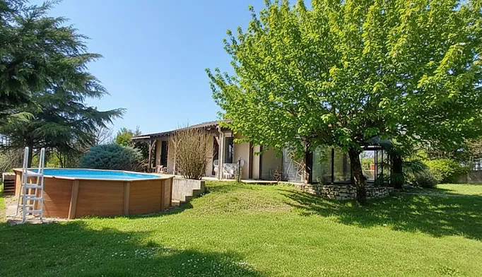 Vallée du LOT, à 2 kilomètres de Cajarc, agréable plain-pied lumineux de 114 m² proposant un séjour de 40 m² avec cheminée et insert à granulés, cuisine équipée de 11 m² (possibilité de créer une seule pièce de 50 m²) avec cellier attenant (5 m²) , 3 chambres de 10.50, 11 et 14 m² , une salle de bain (3.90 m²) et des toilettes séparées. A l'extérieur, spacieuse terrasse carrelée, à l'arrière jardin avec terrasse, gloriette et barbecue , garage et un terrain plat, clos et arboré. Chauffage central au gaz propane et insert à granulés, fenêtres double vitrage PVC, tout à l'égout. A découvrir tout près de la rivière et sur le chemin de Saint Jacques de Compostelle. (6.00 % honoraires TTC à la charge de l'acquéreur.)