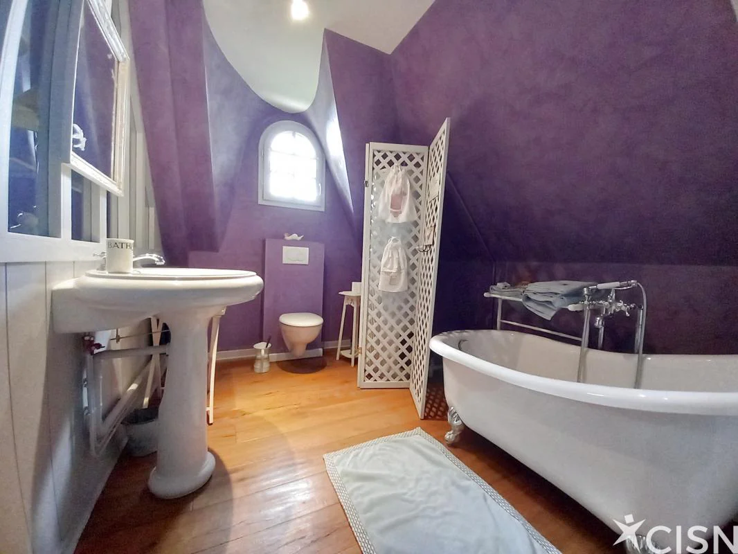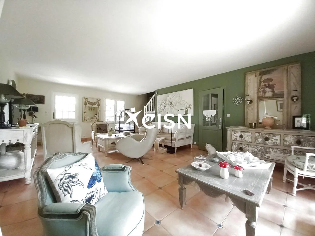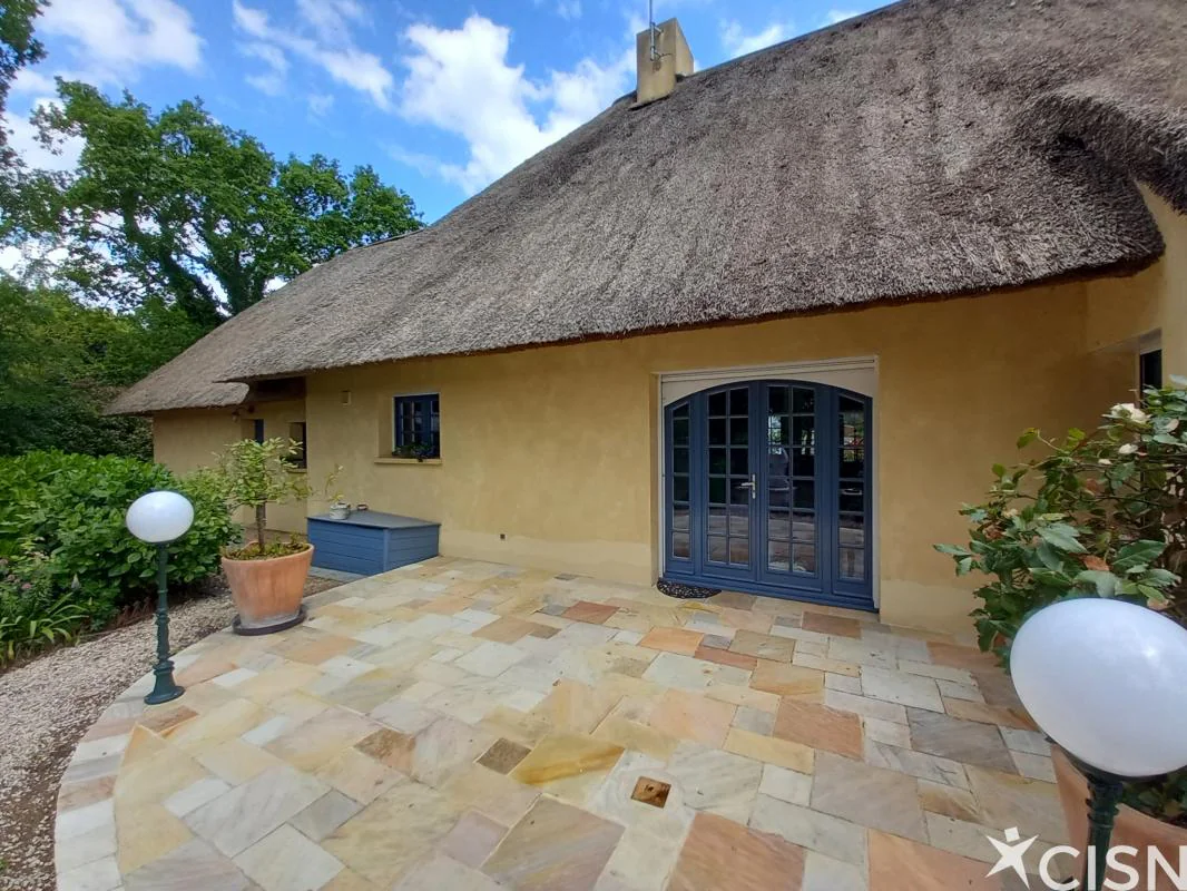Sur un terrain clos et arboré de 1300 m2, cette magnifique chaumière de 180 m2 à la décoration soignée, lumineuse et fonctionnelle, vous séduira pour son charme de l'ancien et le confort d'une maison récente. Au rez-de-chaussée, une entrée, une cuisine dinatoire avec une cheminée, un vaste séjour profitant de deux terrasses Est et Ouest, une chambre avec sa salle de bains, des toilettes, une chambre, une salle d'eau, une buanderie avec de nombreux rangements, et un cellier. A l'étage, une très belle chambre avec une salle de bains et des toilettes, un vaste palier à usage de bureau et salon télé, et un grenier. Egalement un double garage, un chalet de jardin et une cave.