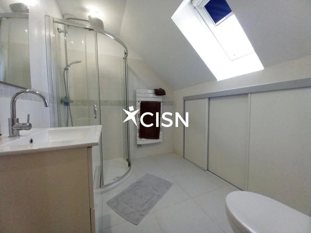 En impasse, au calme et proche gare TGV LA BAULE, cette maison propose : Une entrée avec de grands rangements, une cuisine ouverte, un séjour salle à manger, des toilettes et un garage. A l'étage, deux grandes chambres avec rangements, des toilettes, une salle de bains avec un espace buanderie, et une chambre parentale avec une salle d'eau et des toilettes. A l'exterieur, une belle terrasse et un jardin clos et arboré.